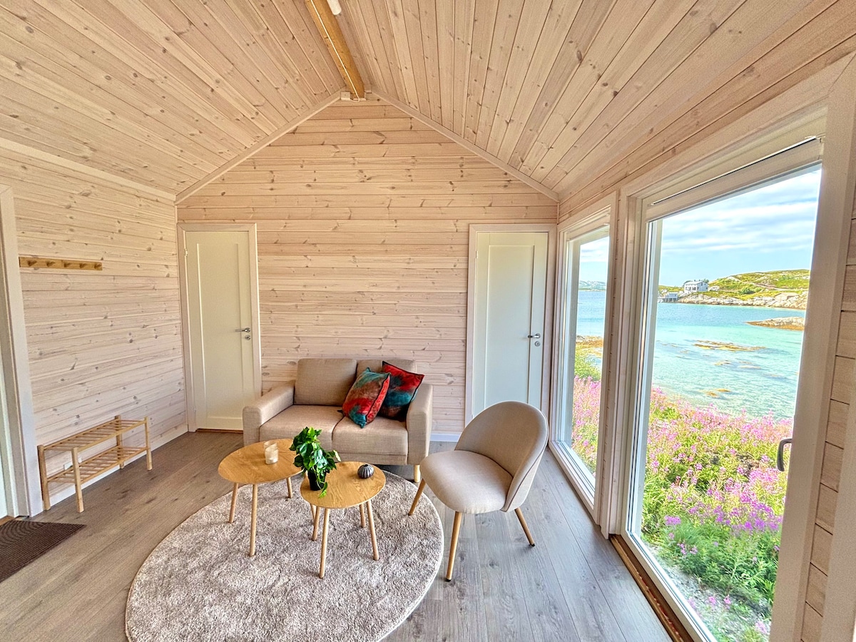 Mag - kayak papunta sa mga lihim na puting beach, mag - bike papunta sa coziest cafe sa buong mundo, pangingisda , paglangoy sa dagat, pagha - hike sa kamangha - manghang kapaligiran at pag - enjoy sa paglubog ng araw at tanawin ng dagat mula mismo sa magandang upuan. Maginhawang cabin/bahay 2 minutong lakad mula sa dagat. Nakaupo ang cabin sa dulo ng kalsada sa mapayapang cabin field kung saan matatanaw ang dagat at ang paglubog ng araw. 5 minutong biyahe ang layo ng grocery store, cafe, restawran, at gift shop. Mula sa cabin, may tanawin ka ng bundok ng Dønnamannen, Lovund, at Øksningan. Mag - kayak at magbisikleta para sa pautang!