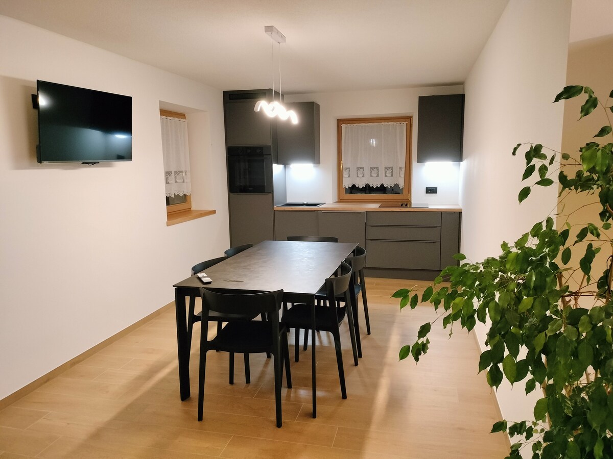 Nasa unang palapag ng host house na sina Roberto at Laura ang apartment. Ang resulta ng mahusay na pagkukumpuni sa isang rustic/kontemporaryong susi, pinagsasama nito ang mga designer na muwebles, antigong kahoy at bakal. Matatagpuan sa Val di Fiemme, sa bayan ng Calvello sa munisipalidad ng Ville di Fiemme, na napapalibutan ng kalikasan, na perpekto para sa mga mahilig sa kapayapaan, katahimikan at paglalakad. Pribadong hardin, patyo, independiyenteng access, panlabas na paradahan. Paradahan para sa video surveillance at panlabas na perimeter.