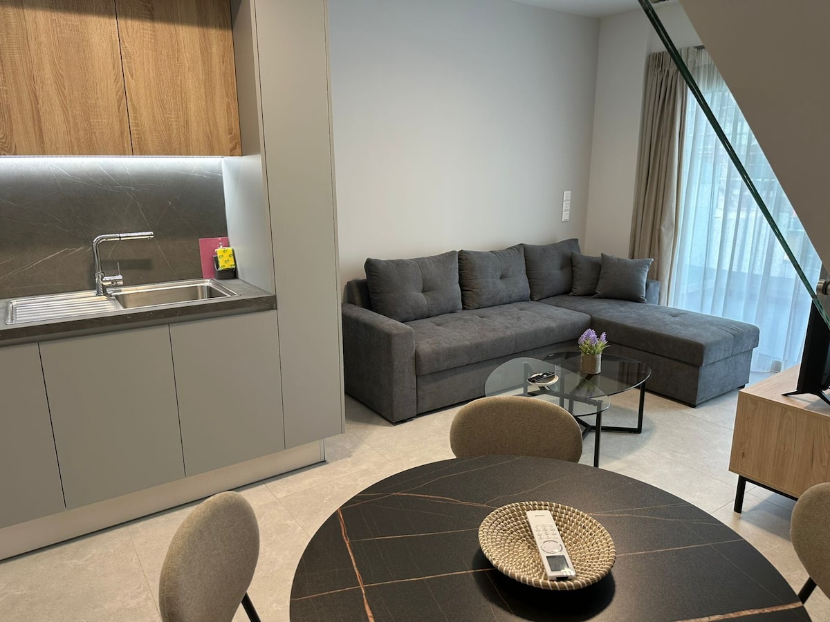 Matatagpuan ang apartment sa sentro ng Piraeus at sa tabi ng daungan. Metro, koneksyon sa paliparan, mga ferry, tren, suburban tren, istasyon ng bus at tram lahat sa loob ng 100 metro. Sentral na lokasyon!! Ang apartment na iyong tutuluyan ay bago at ganap na naayos na may silid - tulugan, kusina, sala 69 metro kuwadrado na may mataas na pamantayan at dinisenyo ng isang mahusay na arkitekto. Matatagpuan sa ika -4 na palapag. Komportable at marangya para gawing hindi malilimutan ang iyong pamamalagi!