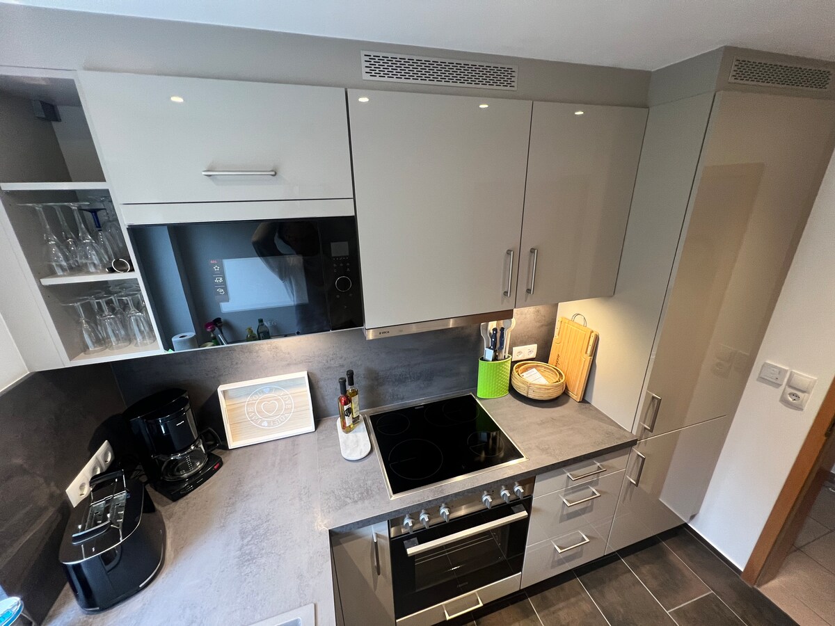 Apartment sa rural na kapaligiran sa kahanga - hangang tanawin ng kultura ng alak. Kahanga - hanga para sa pagrerelaks, para sa magagandang paglalakad sa kagubatan at mga ubasan. Partikular na inirerekomenda ang mga ruta ng "Hiwwel". Pero inaalagaan din nang mabuti ang mga golfer dito. May 3 golf course sa malapit. Ang mga mahilig sa wine ay makakahanap ng pagkakataon para sa mga lokal na winemaker na subukan at mamili.