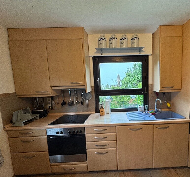 Panoramic 60 m² apartment – for up to 4 guests • King-size bed, sofa bed, folding bed (on request), baby crib • Fully equipped kitchen: stove, oven, kettle, coffee machine, dishwasher, fridge, TV • High-quality linens, towels, coffee & tea • Large terrace with sun lounger, nature view Great location: • 5 min by car / 30 min walk to Idstein center • Hiking trails start at the door • 20 min to Frankfurt Airport & Wiesbaden • 2 km to autobahn • Nearby playground & top grill restaurant