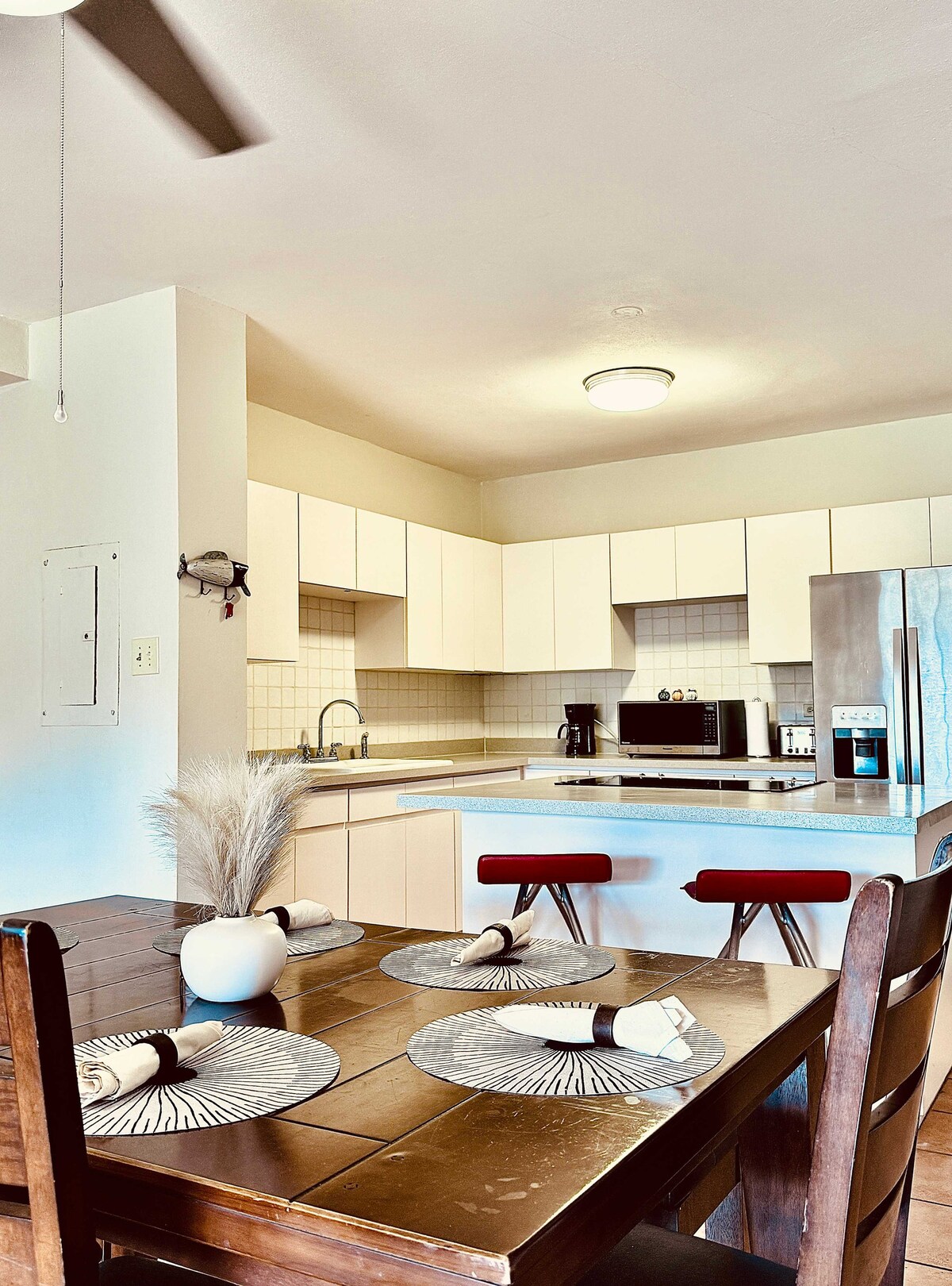 Magbakasyon sa maluwag na tuluyang ito na may 5 kuwarto sa Bo. Puntas—perpekto para sa mga pamilya at malalaking grupo. Mag‑enjoy sa malalawak na sakop na patyo at sa malaking saltwater pool na may tanawin ng karagatan. Magrelaks sa malalaking hagdan ng pool o uminom sa mga upuang pang‑bar. May malaking isla at lababo na may touch faucet sa kusina ng chef kaya magkakasama ang lahat sa paghahanda ng pagkain. Tandaan: hindi kasama sa listing ang projector at speaker system sa sala.