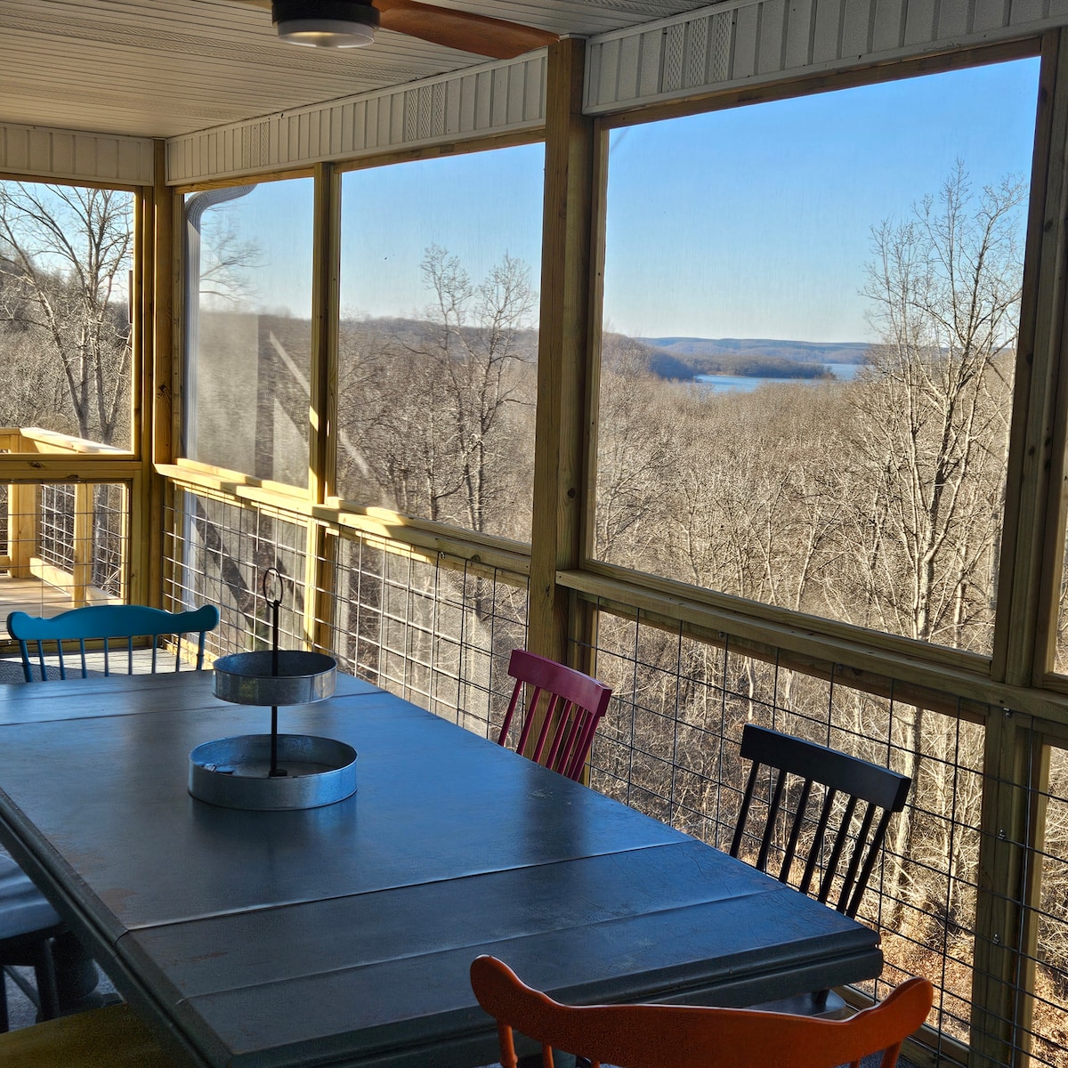 Ang Black Eagle Retreat ay isang 1800 sq foot luxury chalet na matatagpuan sa tuktok ng isang dalawang acre hillside na may 180 degree na tanawin ng Kentucky Lake. Ipinagmamalaki ng tatlong silid - tulugan na modernong A - frame na ito ang mga bintanang mula sahig hanggang kisame, malawak na bukas na konsepto na sala, fireplace, kumpletong kusina, at malaking deck na nilagyan ng grill at hot tub. Ito ay ang perpektong bakasyon para sa isang romantikong katapusan ng linggo o para sa mga kaibigan at pamilya upang tamasahin ang kalikasan. Ang property ay tahanan din ng isang pares ng mga kalbong agila, kaya huwag kalimutan ang iyong mga camera!