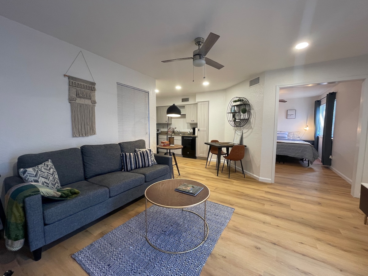Mag - enjoy sa marangyang reserbasyon sa gitnang lokasyon at magandang studio condo na ito! Ang kamakailang na - remodel na condo na ito ay may mga high - end na finish na may mahusay na kalidad sa isip. Lahat ng bagay mula sa dimming overhead lights hanggang sa mga marmol na finish, ito ay dinisenyo sa iyo sa isip. Magugustuhan ng mga bisita ang aming outdoor patio area na may seating area. Masisiyahan din sila sa aming mga walang katapusang amenidad tulad ng mabilis na WiFi, pool, fire pit, patyo, ihawan, at marami pang iba! Matatagpuan kami ILANG MINUTO lamang mula sa gitna ng downtown OKC.