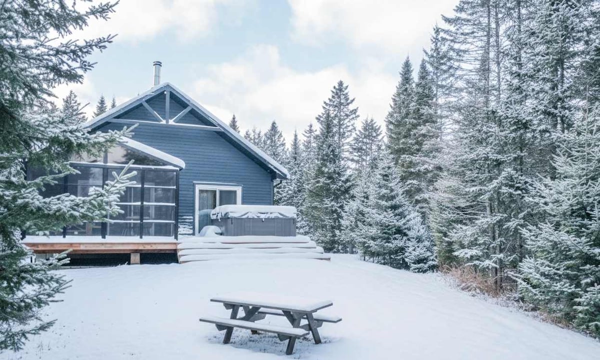 Naghahanap ka ba ng bakasyunan sa sentro ng kalikasan? Ang bagong mountainide Scandinavian cottage na ito ay mag - aakit sa iyo. Sa kanyang lupain ng higit sa 1 milyong square feet, maaari mong tangkilikin sa site ang isang lawa, isang ilog, paglalakad trails at marami pang iba! Mananatili ka sa isang lugar kung saan ang pagpapahinga at kalikasan ay nasa pagtatagpo. Mahusay na kagamitan, ang chalet ay naghihintay para sa iyo! Idinisenyo para sa 2 tao ngunit maaaring tumanggap ng hanggang sa 3 tao na may sofa bed (single).