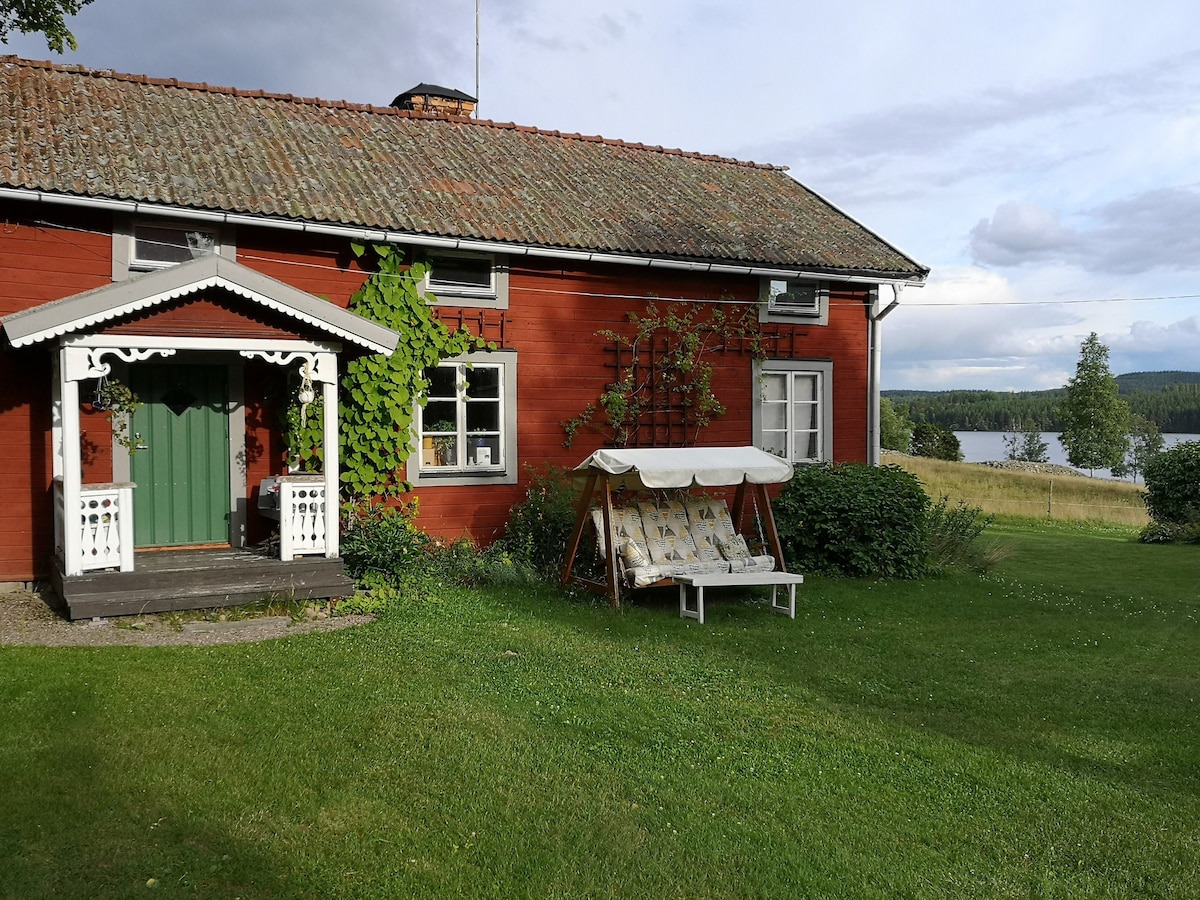 Cabin na may magandang lokasyon at magagandang tanawin sa tunay na kanayunan ng dala! Ang dekorasyon ay may klasikong pine type na 70s na fully functional ngunit bahagyang isinusuot (bagong ayos na banyo). Sa kusina ay may kalan na gawa sa kahoy at sa kuwarto sa tabi ng fireplace. Sa itaas, may kuwartong may malaking bintana ng pananaw kung saan matatanaw ang lawa. Maraming mga lugar ng pagtulog, hindi bababa sa 5.