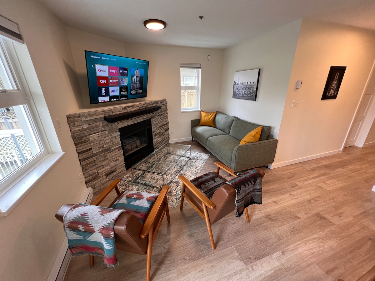 Matatagpuan sa gitna, na - renovate, pribadong suite sa pangunahing palapag ng isang magandang bahay, ilang hakbang ang layo mula sa mga amenidad ng Main St.. at madaling mapupuntahan ang downtown. Masiyahan sa isang silid - tulugan, at sofa bed, mga kasangkapan sa SS sa kusina na kumpleto ang kagamitan, at ang init ng gas fireplace, portable na A/C at air purifier. Ang mga sahig ng hardwood ay umaabot sa dalawang deck, ang isa ay sakop ng isang tanawin sa likod - bahay. Sa loob ng in - suite na labahan, nangangako ang lugar na ito ng hindi malilimutang pamamalagi sa gitna ng buhay sa lungsod. Libreng paradahan sa kalye. Walang alagang hayop, hindi angkop para sa mga maliliit na bata.