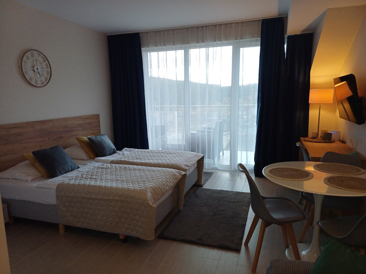 Modern, maluwag at eleganteng apartment sa kabundukan sa mismong sentro ng kaakit-akit na ski town ng Stronie Śląskie. 200 metro lamang mula sa indoor swimming pool at sports hall. Isang perpektong lugar para sa mga taong mahilig sa paglalakbay sa bundok at para sa mga mahilig sa white madness. Ang mga kalapit na ski resort (kabilang ang sikat na Czarna Góra na 4 km ang layo) ay magbibigay ng maraming karanasan sa mga nagsisimula at advanced na skier sa taglamig, at mga nakamamanghang tanawin at mga ruta ng paglalakad at pagbibisikleta sa tag-araw.
