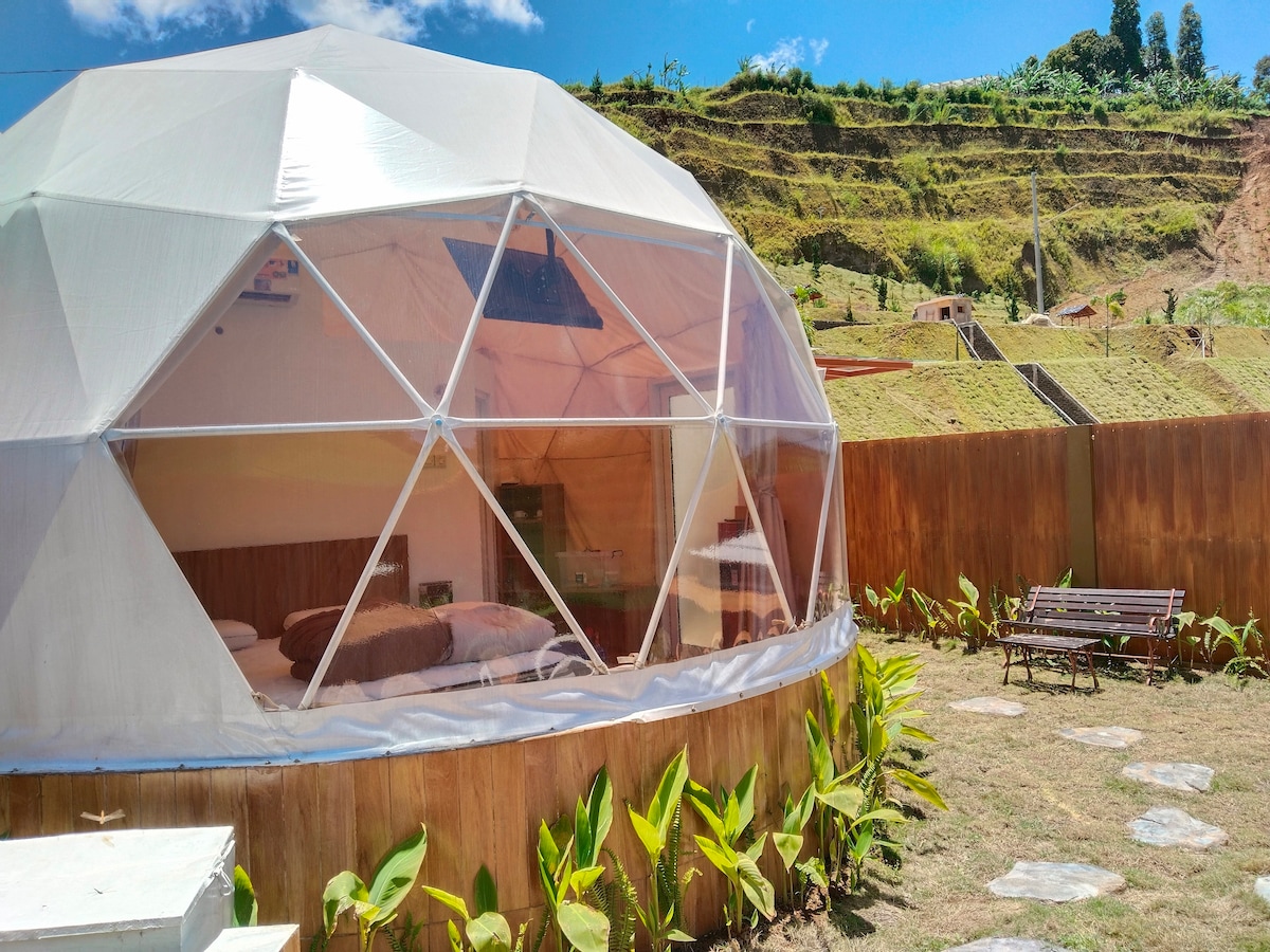 Nikmati menginap di glamping dome suasana indah di tempat romantis ini di tengah alam dengan suasana yang sejuk