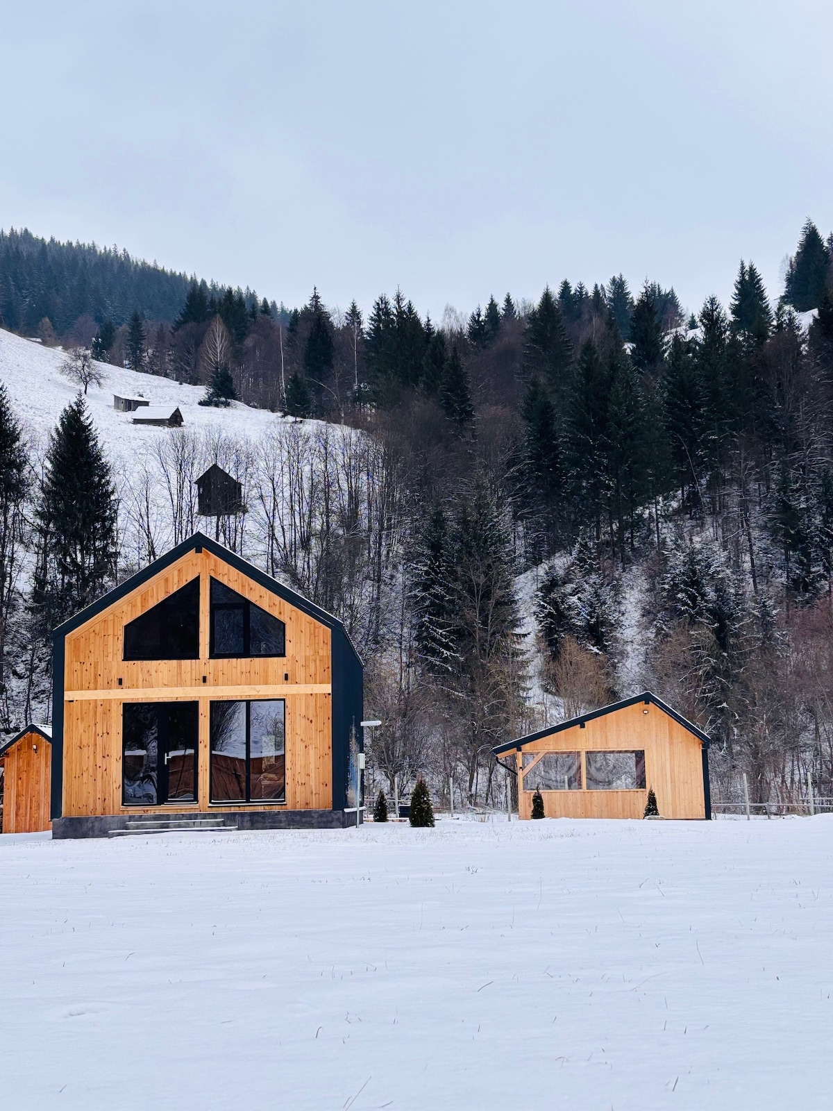 Pinagsasama‑sama ng chalet ang gawa ng tao at likas na kagandahan. Ang arkitektura ay nagbibigay ng paggalang sa lupa, gamit ang sustainably sourced timber na nag - uugnay sa iyo nang direkta sa saligan ng enerhiya ng planeta. Inaanyayahan ng mga malalawak na bintana ang malambot at nakapapawing pagod na bulong ng hangin sa chalet, na lumilikha ng tahimik at tahimik na kapaligiran. Sa araw, ang chalet ay naliligo sa ginintuang sinag ng araw na tumatagos sa mga bintana, pinupuno ang tuluyan ng init at kasiglahan.