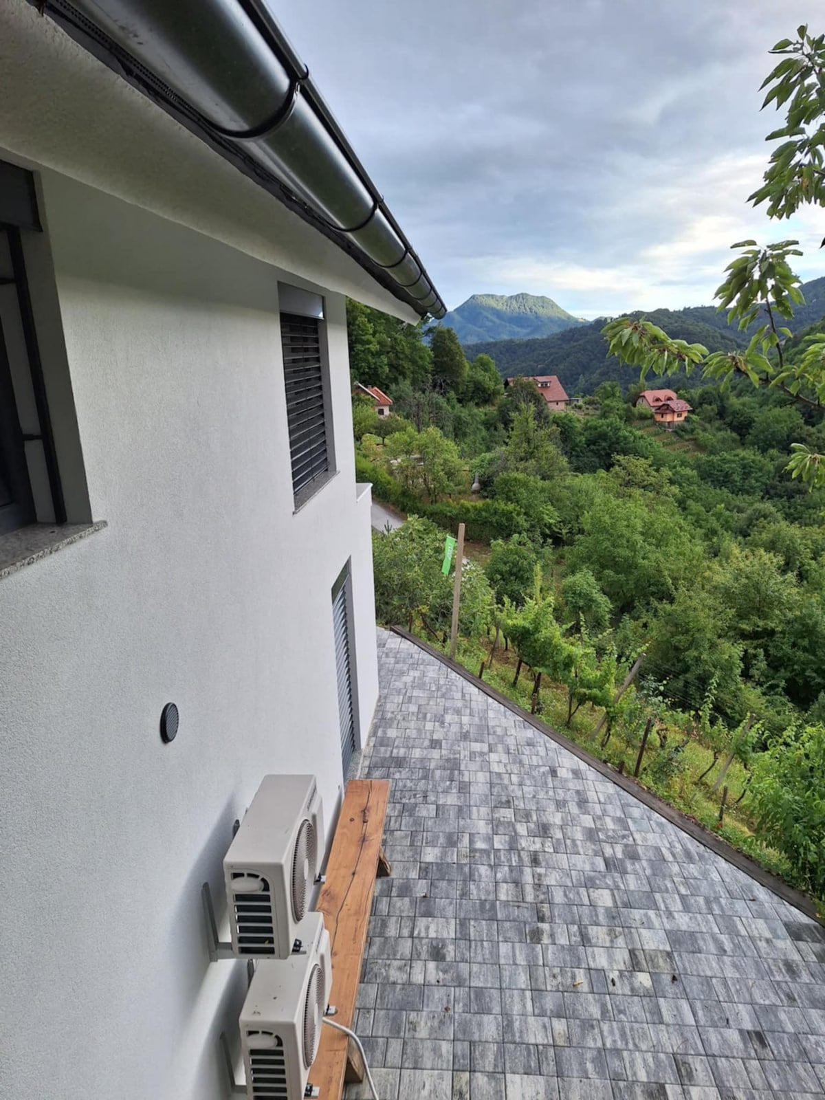 Maganda, modernong bahay ng pamilya sa kanayunan, 12 minutong biyahe lang sa bus papunta sa sentro ng lungsod (halos nasa labas ng gate ang bus stop). Ang lugar ay ang buong itaas na palapag na isang pribadong silid - tulugan, banyo at isang bukas na mezzanine chill out/work area. Maraming libreng paradahan. Napakaganda ng tanawin pababa sa Zagreb at 1 km lang ang layo mo mula sa mga hike sa kagubatan ng Sljeme NP. Isa kaming pamilyang may maayos na biyahe at inaasahan namin ang pagtanggap ng mga bisita sa aming magandang tuluyan at lungsod.