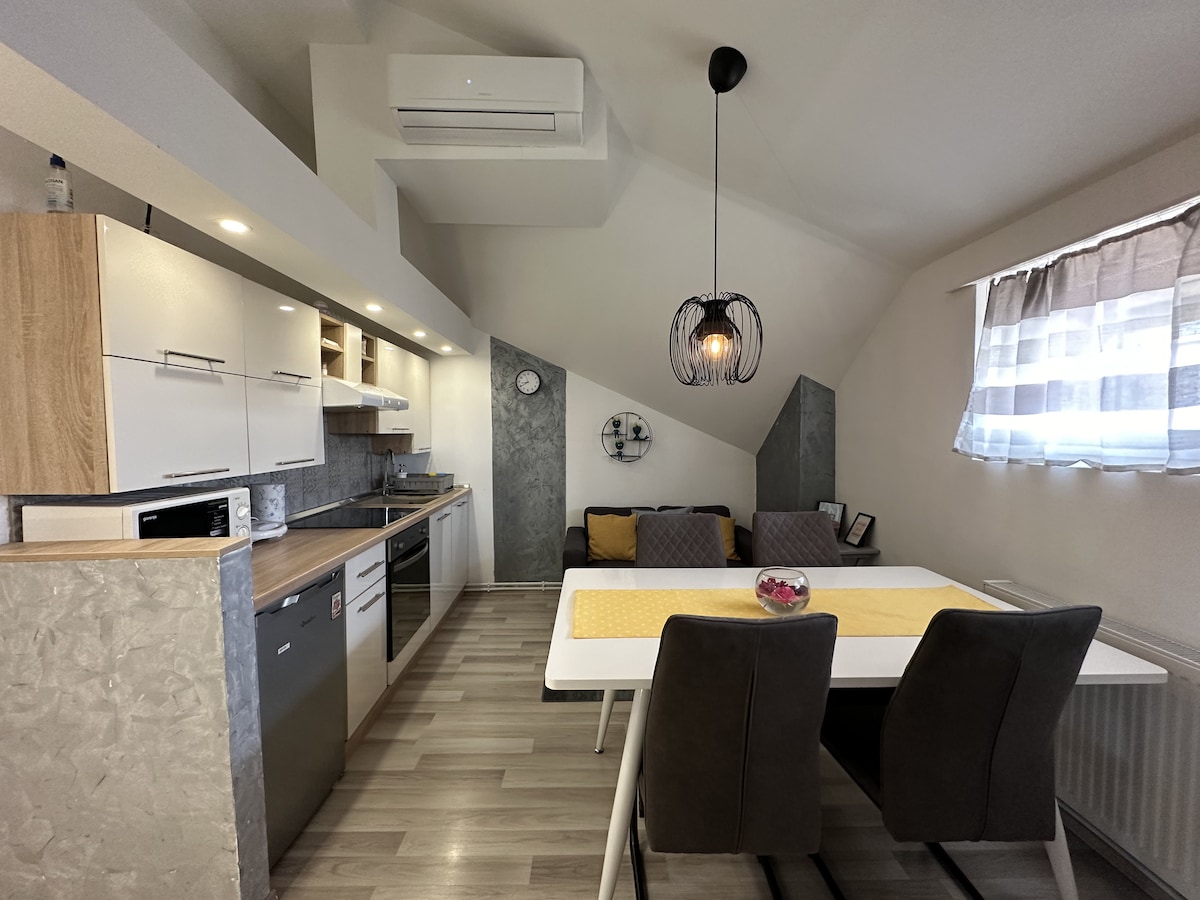 Ganap na matutugunan ng isang silid - tulugan na apartment (33 m2), na - renovate, sa tahimik at tahimik na kalye ang lahat ng iyong inaasahan. Pribadong paradahan sa bakuran, central heating at air conditioner, high - speed optic internet. Natutugunan ng apartment ang mga kondisyon para sa 3* ayon sa mga kagamitan at serbisyo ayon sa mga pamantayan ng EU. Mula sa pangunahing plaza ng lungsod ay 3 km. 200 m mula sa apartment ay malaking supermarket Kaufland, DM at merkado. Ikaw mismo ang mag - check in/mag - check out Para sa 1 o 2 may sapat na gulang o 1 may sapat na gulang at bata (12+ taong gulang). Kasama ang buwis sa pamamalagi.