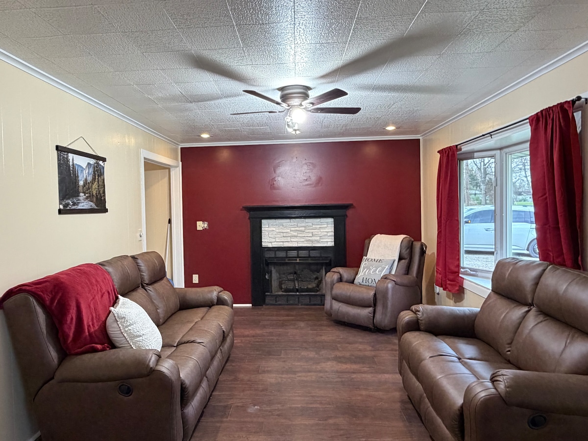 Magandang bahay na may dalawang palapag sa Highway 41 na may hanggang anim na tao. May istasyon ng gasolina, subway, bar at grill ni Mickey, Mexican restaurant at dollar general sa loob ng maigsing distansya. 15 minutong biyahe mula sa terre haute. 15 minutong biyahe papunta sa Sullivan Lake. 8 minutong biyahe papunta sa industrial park. May sapat na lugar para sa pamilya na may opisina sa itaas at rec room na may ping pong table, board game, at card.