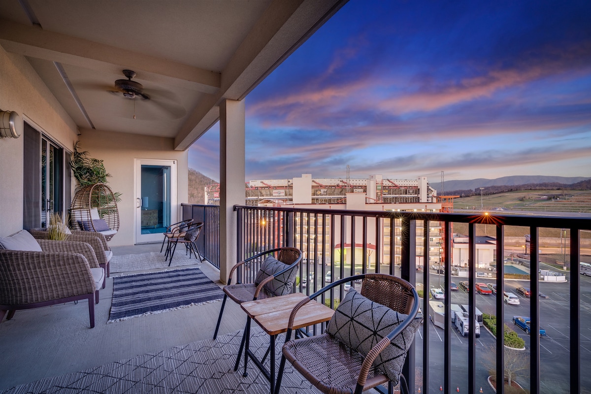 Mamalagi sa mararangyang tuluyan na may magandang tanawin ng Bristol Motor Speedway sa Speedway Skyview, isang penthouse condo na may 3 kuwarto at 3 banyo. Kayang‑kaya ng marangyang retreat na ito ang 6 na bisita kaya perpekto ito para sa mga pamilya, magkakaibigan, o mahilig sa karera. Tiyak na magiging parang champion ang pakiramdam mo sa penthouse condo na ito dahil sa mararangyang amenidad, komportableng matutuluyan, at lokasyong walang kapantay. Halina't makipagkumpitensya at mag‑enjoy sa ginhawa ng Speedway Skyview!