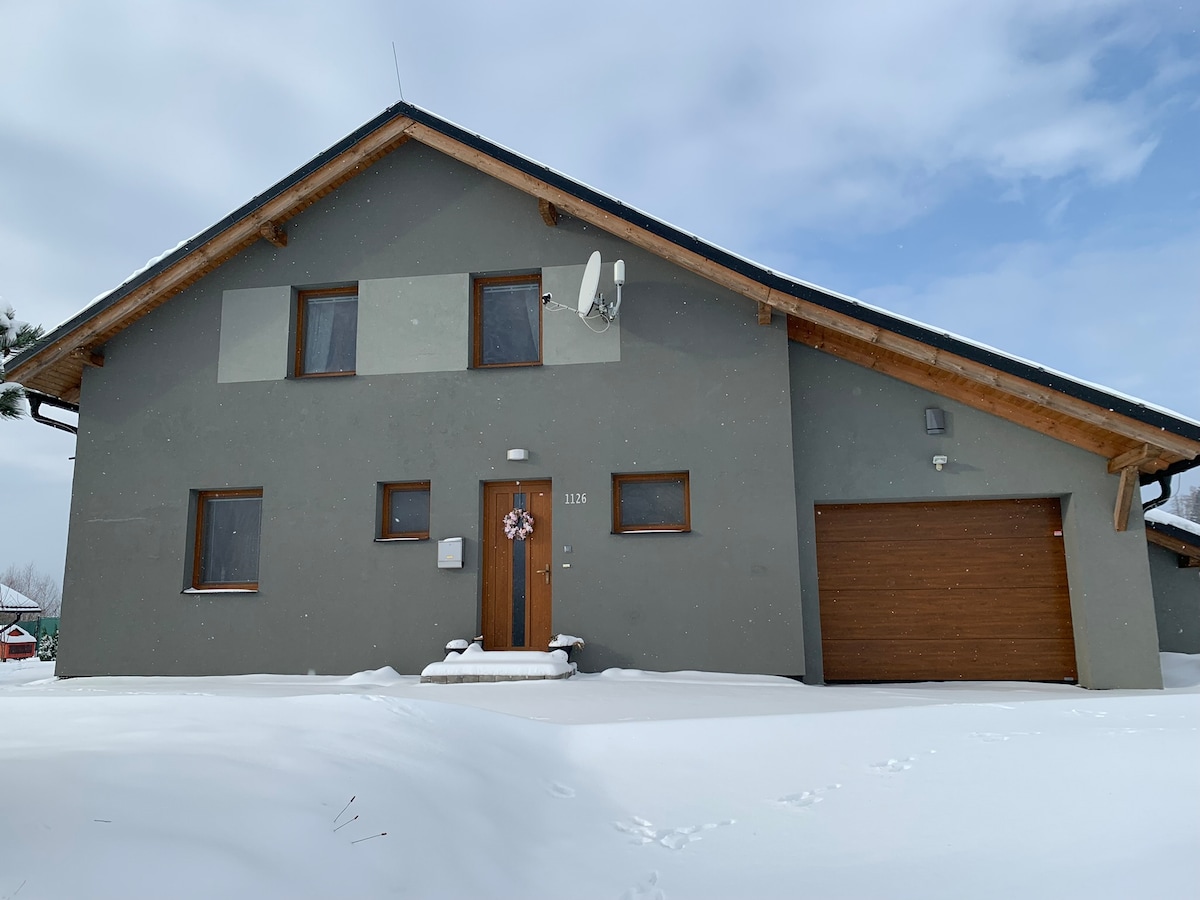 Matatagpuan ang tradisyonal na bahay na yari sa kahoy sa lambak ng kabundukan ng Jeseniky kung saan may magagandang tanawin ng mga bundok na may niyebe. May mga ski slope, cross country trail, at iba pang sports center para sa taglamig at tag‑araw sa kapitbahayan. Sa tag‑araw, tagsibol, at taglagas, puwedeng mag‑hiking, magbisikleta, at lumangoy ang mga bisita sa malinaw na tubig ng mga granite quarry. Maghanap ng perpektong matutuluyan para sa bakasyon ng pamilya at isama ang mga alagang hayop :)