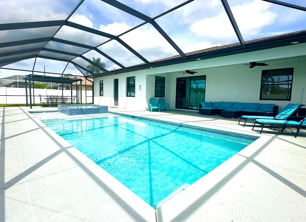 Welcome to our Cozy Cape Coral Getaway! Step into a spacious, open layout that welcomes all families & friends with open arms! Nestled in a perfect central location, our place was designed with your convenience in mind! Whether you're whipping up delicious meals in the full kitchen, enjoying quality time in the game-filled living space, or hanging out in the jacuzzi/ private fenced backyard. We are committed to transforming every moment here into unforgettable memories! *PET FRIENDLY*