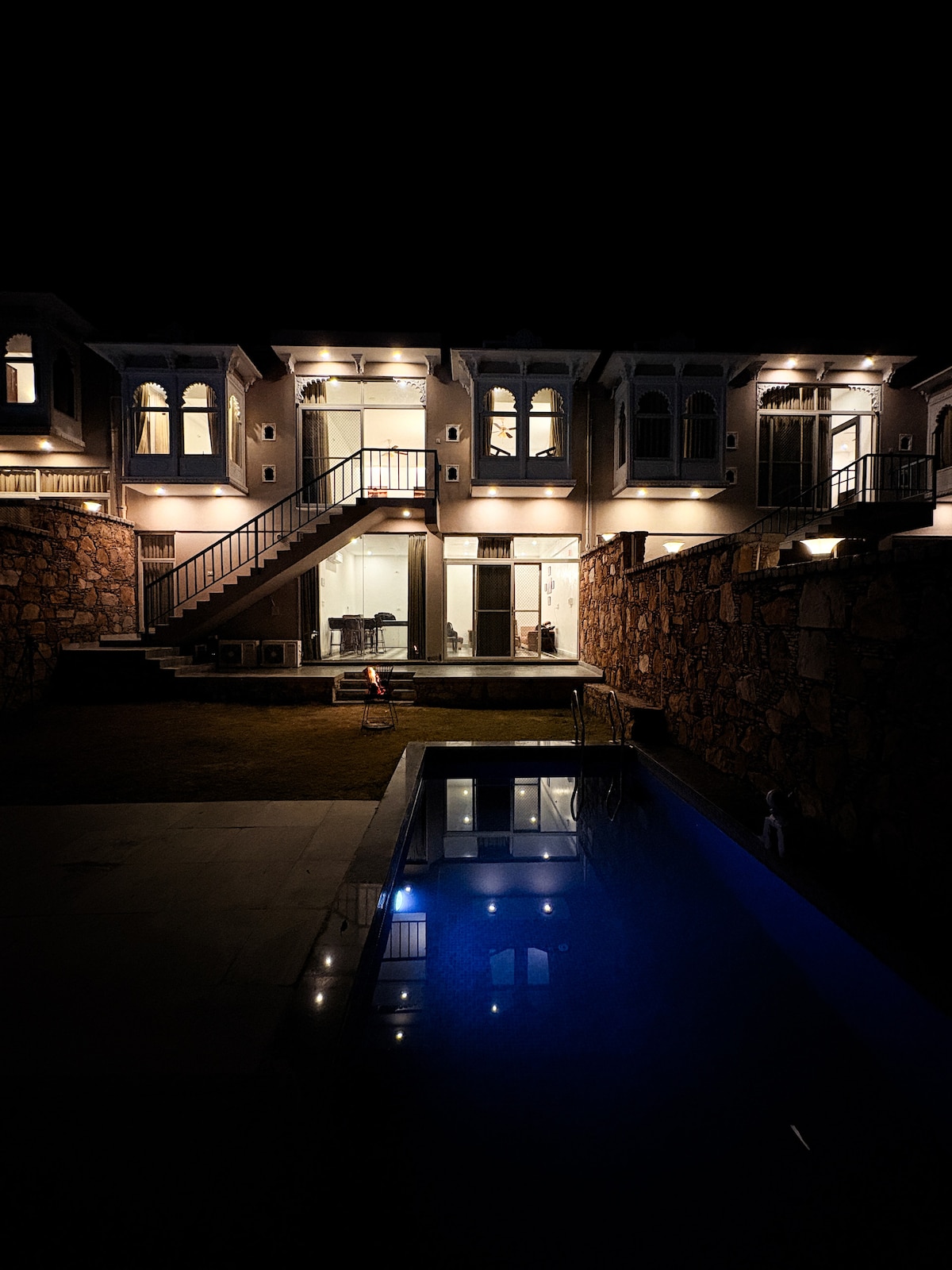 Purong vegetarian property – hindi pinapahintulutan ang hindi vegetarian na pagkain. Nasa Lungsod ng mga Lawa ang 2 silid - tulugan na ito na may kumpletong kusina at pinakamagagandang sala. Nabanggit ba namin ang higanteng pribadong pool sa magandang hardin? Para itong iyong personal na palaruan ng tubig. Kaya, narito ka man para magbabad sa kagandahan ng Udaipur o gusto mo lang ng cool na hangout kasama ng iyong gang, huwag nang tumingin pa sa Villa na ito.