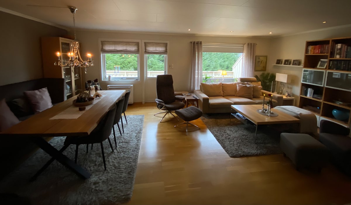 Bago at modernong 2 silid - tulugan na apartment sa gitna ng Førde na may lahat ng kailangan mo para sa komportableng pamamalagi. Maliwanag at komportable ang apartment, may kusinang may kumpletong kagamitan, pinagsamang washing machine at dryer, TV at wired internet (Wi - Fi). Maikling lakad papunta sa sentro ng lungsod, sentro ng komersyo, mga restawran, Førdehuset at Hafstadparken. Dito ka matatagpuan sa gitna, pero tahimik. Magagandang hiking trail sa malapit lang. Posibilidad ng dagdag na higaan, NOK 150 bawat araw.