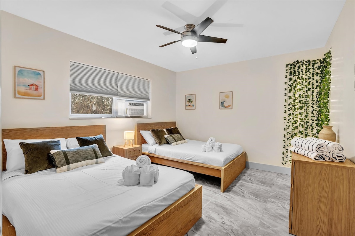 Our Vacation Home on Fort Lauderdale’s Beachfront is a beautifully renovated 3-bedroom, 2-bathroom retreat just steps from the beach. Featuring a spacious master bedroom with pool access, luxurious finishes, and a spa-inspired en suite, this home offers comfort and privacy. Enjoy a heated saltwater pool, cozy patios, and multiple outdoor lounging areas surrounded by tropical greenery. With keyless entry, ductless AC, and secure parking, it’s the perfect getaway for relaxation and convenience.