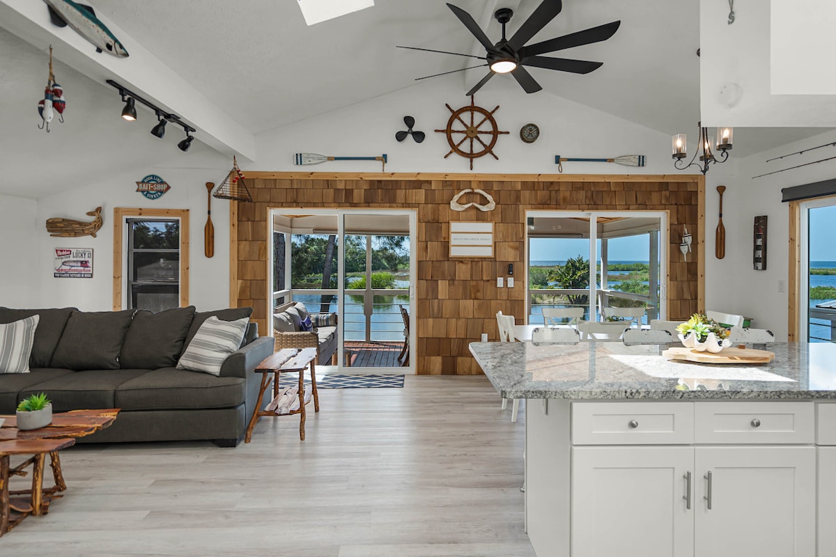 Mag‑relax sa bagong ayos na cottage namin na nasa tabi ng ilog. Matatagpuan ang maluwag na tuluyang ito na may dalawang kuwarto at dalawang kumpletong banyo sa pagitan ng magagandang punong tropikal sa tabi ng malinaw na ilog na papunta sa Gulf of Mexico. Ang 20 x 20 master suite ay binubuo ng king bed, pasadyang dalawang tao na rain shower at naglalakad sa pribadong balkonahe. Ang unang antas ay may bukas na plano sa sahig na may kumpletong kusina na handa para aliwin ang pamilya at mga kaibigan. Ang garahe ay may 6 na kayak, life jacket, pangingisda, washer at dryer.