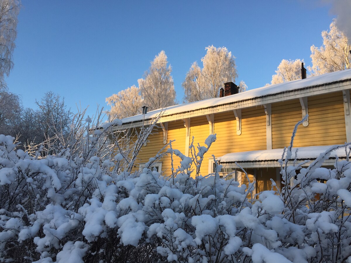 Malapit ka sa lahat kapag namalagi ka sa bagong retro na tuluyang ito sa gitna ng Äänekoski. Sa kabilang panig ng kalsada, may R - kioski kung saan maaari mong makuha ang iyong umaga ng kape kung ayaw mong gawin ang mga ito sa iyong sariling kusina. Masisiyahan ang tahimik na access sa Äänekoski sa iyong sariling glazed balkonahe. 5 minutong lakad lang ang layo ng beach. Isang perpektong lugar para magpahinga para sa mga biyahero sa trabaho, pero angkop din para sa panandaliang pamamalagi para sa mga pamilya.
