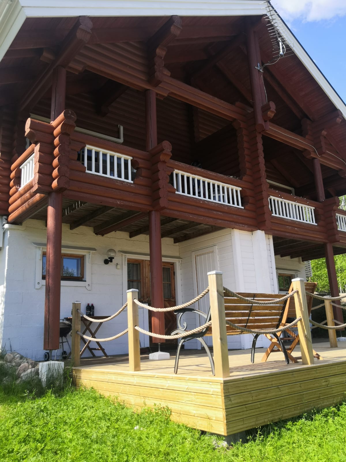 Log cabin na may tanawin ng lakeside. Kasama sa mga tampok ang pribadong sauna, isang silid - tulugan, at isang tulugan na bahay na matatagpuan sa labas ng pangunahing cabin. Pinagsama ang sala at kusina. Matatagpuan ang isang lugar ng BBQ sa bakuran. Ang toilet ay isang dry/outdoor toilet at walang toilet na may tubig. Shower at i - tap ang tubig na na - filter mula sa lawa. Filter ng sariwang tubig. Available ang bangka para sa libreng paggamit. Mga Aktibidad: wildtaiga site. Hot tub / dagdag na bayarin 90 €.