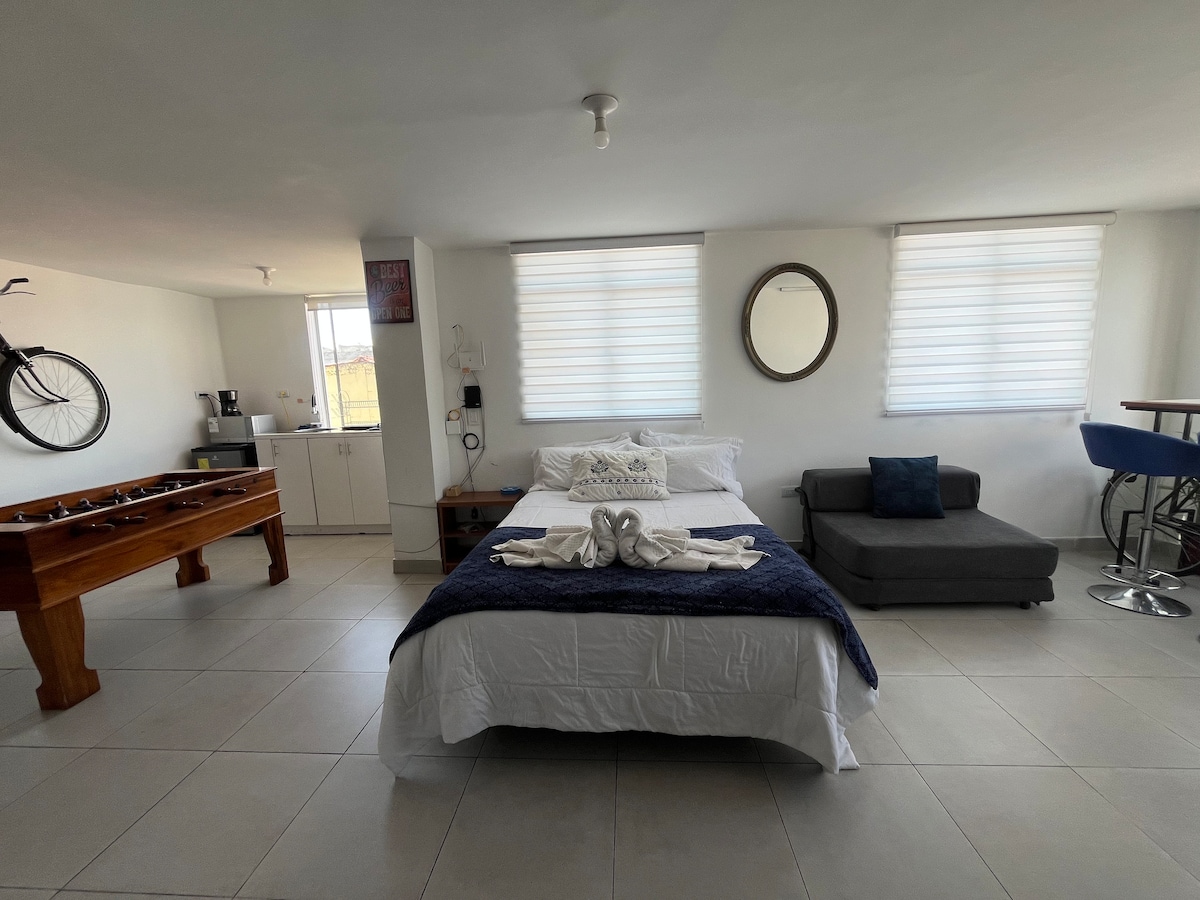 Estudio moderno en el exclusivo Edificio Qorner, ideal para ejecutivos, parejas y estancias de trabajo o descanso en La Carolina. Ubicado en el piso 10, con excelente luz natural, acceso a coworking, gimnasio y áreas húmedas (si reservas mas de 5 días), a pasos de centros comerciales, restaurantes y transporte. Diseñado para una estadía cómoda, práctica y bien conectada. Te esperamos!