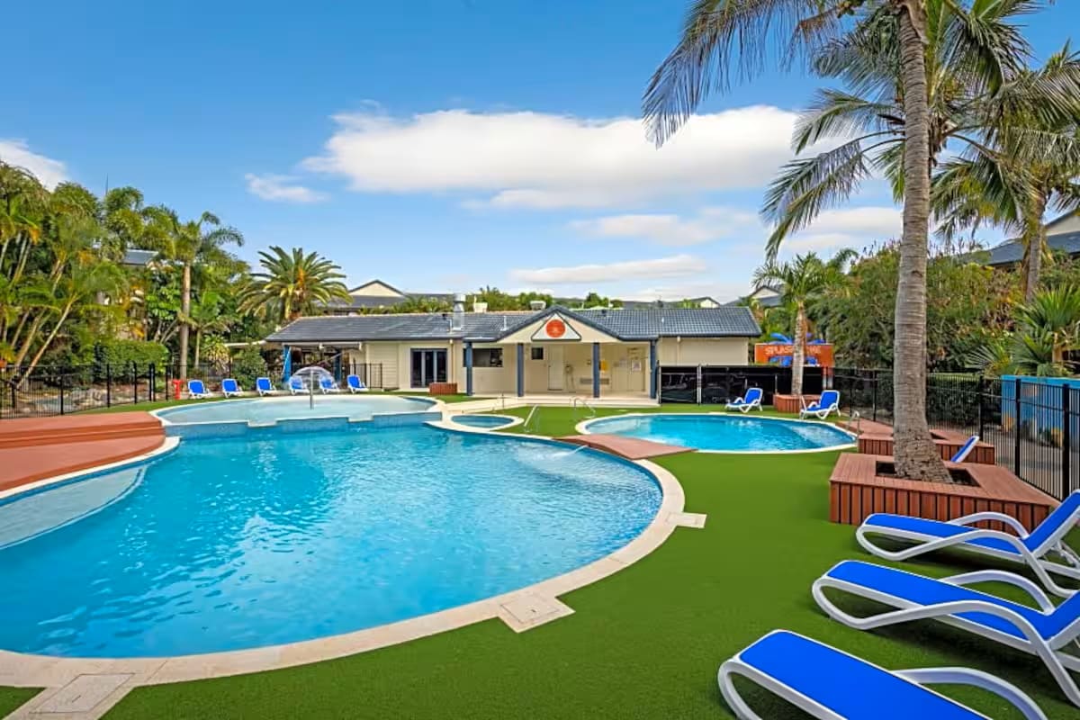 Ang maganda at bagong ayos na 2 silid - tulugan na apartment na ito na matatagpuan sa ika -3 palapag, na may mga kamangha - manghang tropikal na tanawin ay perpekto para sa isang bakasyon ng pamilya! May perpektong kinalalagyan kung saan matatanaw ang pool ng mga may sapat na gulang, maaari mong tangkilikin ang kapayapaan at lubos na mula sa balkonahe, habang 1 minutong lakad lamang ang layo mula sa kilalang Turtle Beach Splash Zone Water Park. Tangkilikin ang kamangha - manghang lokasyon; 350m lamang mula sa malinis na Mermaid Beach, 30min biyahe sa lahat ng Best Theme Parks ng Australia at hanay ng iba pang mga atraksyon ng pamilya ng Gold Coast.