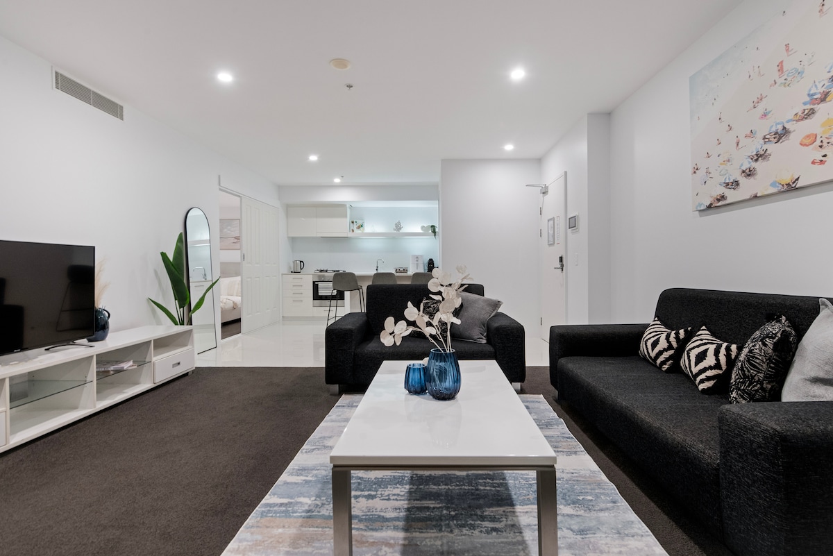 MGA TANAWIN MAGPAKAILANMAN :) Damhin ang pinakamaganda sa Surfers Paradise sa nakamamanghang riverfront apartment na ito na may mga nakamamanghang tanawin at napakarilag na sunset. Nagtatampok ang fully self - contained apartment na ito ng marangyang king bed sa master room at queen bed sa ikalawang tulugan. Tangkilikin ang kaginhawaan ng isang two - way na banyo na may king single spa, walk - through wardrobe, at washing machine at dryer. Manatiling konektado sa walang limitasyong WiFi at iparada ang iyong kotse nang ligtas nang libre.