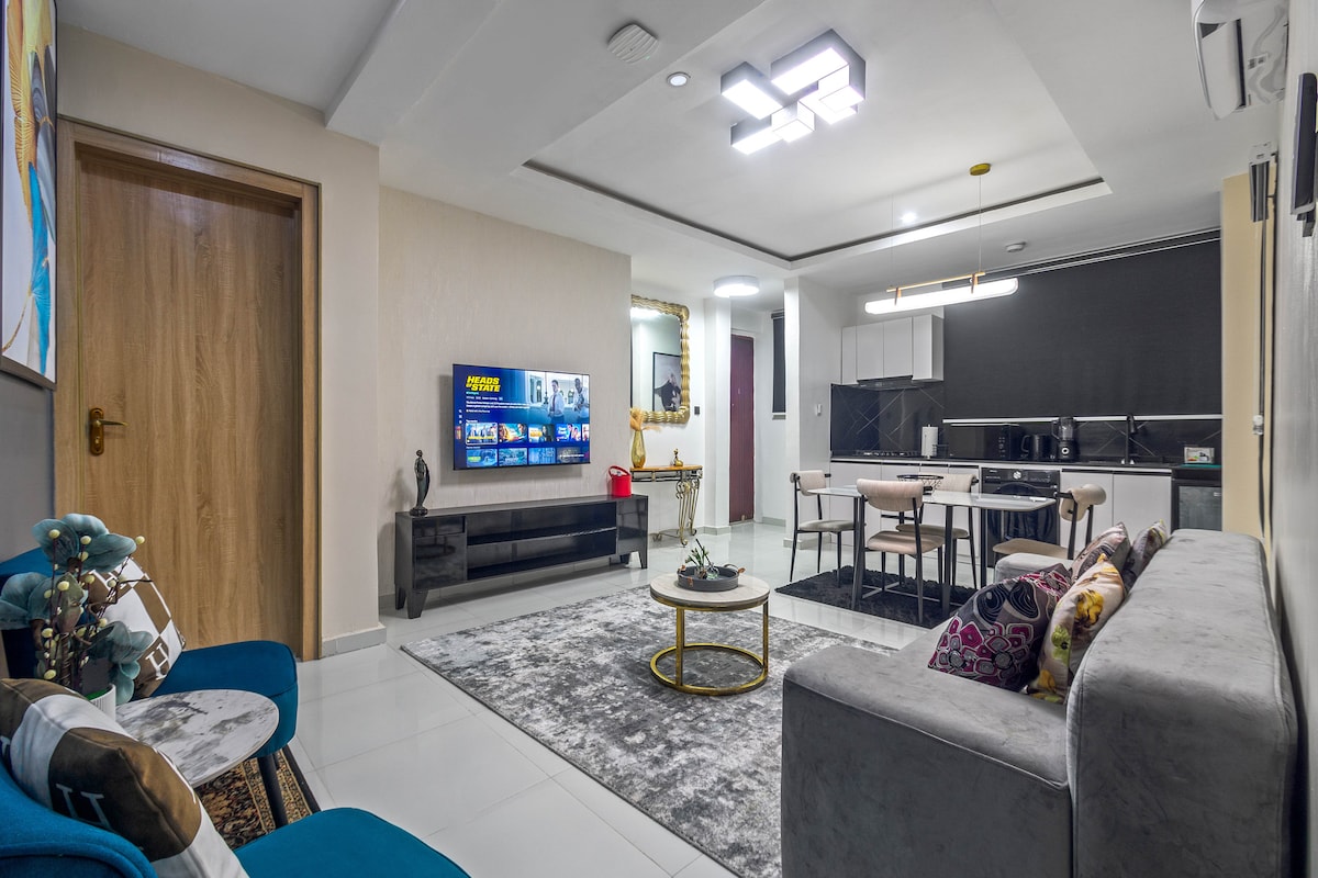 Maligayang pagdating sa iyong tahimik at sentral na lokasyon na retreat sa Ilupeju, Lagos. Ang apartment na ito ay perpekto para sa mga business traveler, malayuang manggagawa, o mag - asawa na naghahanap ng kaginhawaan, seguridad, at kaginhawaan. Sa pamamagitan ng pamimili, mga restawran, mga bangko, at pampublikong pagbibiyahe na ilang sandali lang ang layo, masisiyahan ka sa pinakamagandang Lagos sa labas mismo ng iyong pinto. May kumpletong kagamitan ang apartment na may 24/7 na power backup, on - site na serbisyo ng attendant, workspace, access sa gym, at mas mainam ito para sa mga panandaliang pamamalagi at pangmatagalang pamamalagi.