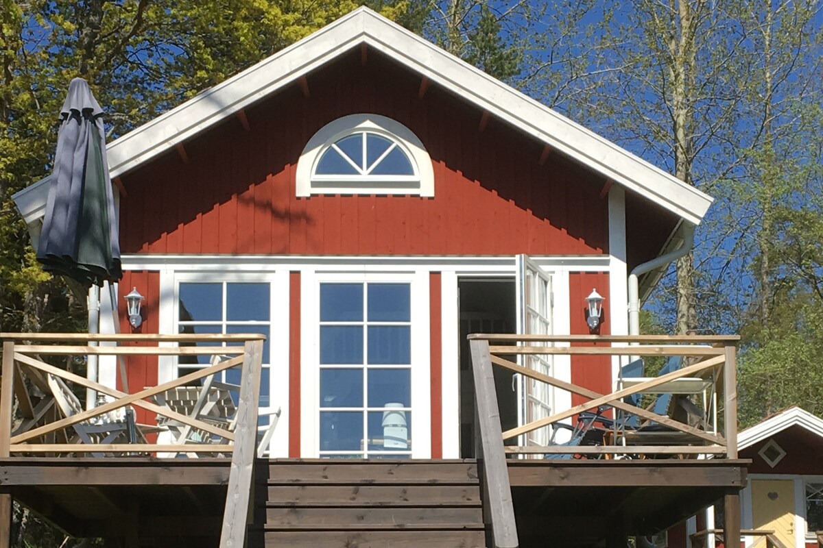 Maligayang pagdating sa pamamalagi sa tabi ng moose at usa. Sa maliit na maaliwalas na bahay na ito, nakatira ka sa isang pribadong lagay ng lupa sa tuktok ng Frejs Backe. Ang plot ay may malaking terrace sa paligid ng tatlong gilid ng bahay, na may araw para sa almusal, tanghalian at hapunan. Sa bahay ay may malaking damuhan na angkop para sa paglalaro at mga laro. Ang paligid ay binubuo ng mga parang at magandang kagubatan. 200 metro sa bathing jetty at 800 metro sa mga bangin at beach sa araw ng gabi. May cooker, oven, refrigerator, at microwave ang kusina. Ang isang silid - tulugan ay may bunk bed at sa sala ay may fireplace.