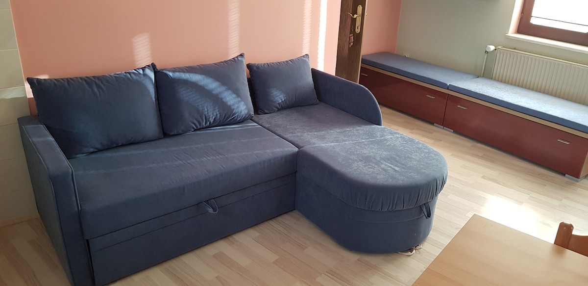 Mansard apartment/studio (stairs 2nd floor) is equipped with all the necessary kitchen and other appliances and it's suitable for 2 people maximum. It has one bed (190x200). The apartment lies in the foothills of Celje castle and it's surrounded by greenery. The city center/train station stands (20min/1.3km) of the apartment, the nearest grocery store is 1km away.