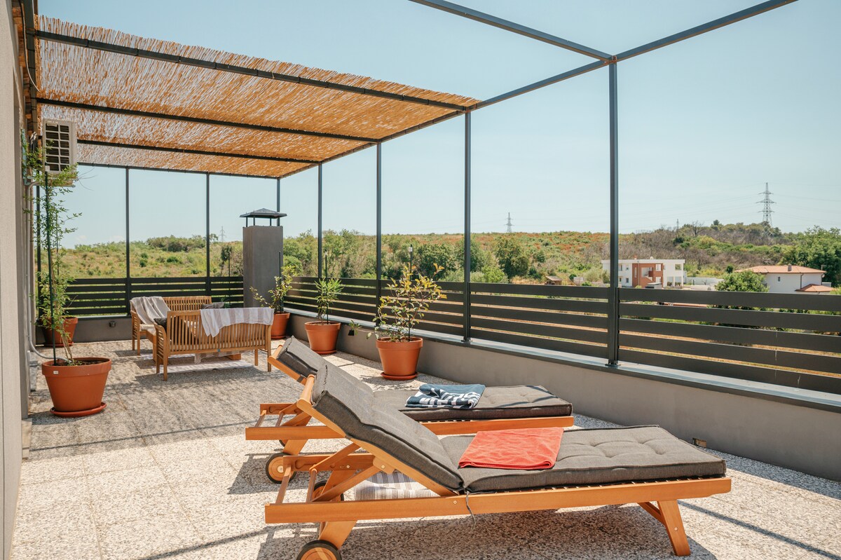 Isang apartment sa gitna mismo ng lungsod, ang lahat ng amenidad sa iyong mga kamay. Tanawin mula sa sala at mga silid - tulugan ng Pula Cathedral at dagat ng baybayin ng Pula. Naka - air condition ang property na may tatlong indoor air conditioning unit, nag - aalok ang kusina ng property ng lahat ng amenidad na kailangan para sa pamumuhay, at may flat - screen satellite TV at sofa sa sulok ang sala. Nag - aalok ang property ng dalawang kuwarto. Nilagyan ang banyo ng paglalakad sa shower at washing machine. Ang maluwang na terrace ay isang espesyal na perk ng apartment.