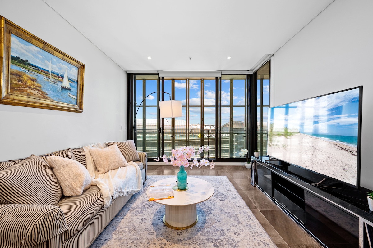 Damang - dama ang excitement na sumakay lang sa elevator na malayo sa mga aktibidad sa tabi ng daungan. Humanga sa mga pader na puno ng nakakabighani at mapang - akit na sining, at magpahinga sa komportableng couch na gawa sa katad. Magkaroon ng mga nightcap sa balkonahe at matulog sa mga silid - tulugan na may mga tanawin ng skyline ng lungsod at Harbour. Alam naming magiging komportable ka sa mga modernong ilaw at maaliwalas na kuwarto, na may mga built - in na wardrobe at TV. Available din ang Google Chrome sa Main TV sa lounge room. Sigurado akong magugustuhan mong bumalik at hindi na mag - enjoy pagkatapos ng isang araw o gabi ng pag - enjoy sa lahat ng iniaalok ng Sydney. Hindi mo gugustuhing umalis!