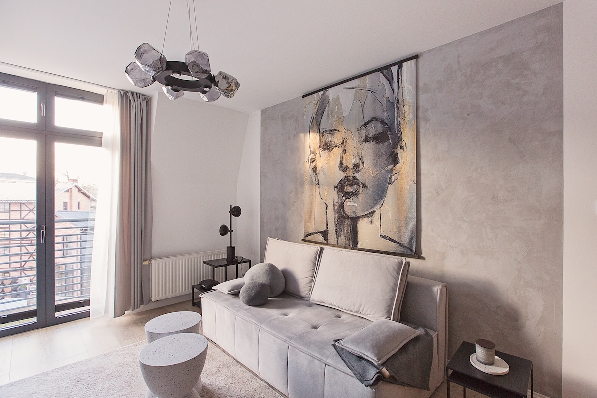 To miejsce łączy w sobie zalety ścisłego centrum i spokojnej okolicy. Z jednej strony masz dostęp do klimatycznych kawiarni, restauracji i parku, z drugiej – możesz cieszyć się ciszą i odpoczynkiem. Mieszkanie znajduje się w drugiej linii zabudowy, co sprawia, że mimo bliskości miasta nie dociera tu jego gwar.