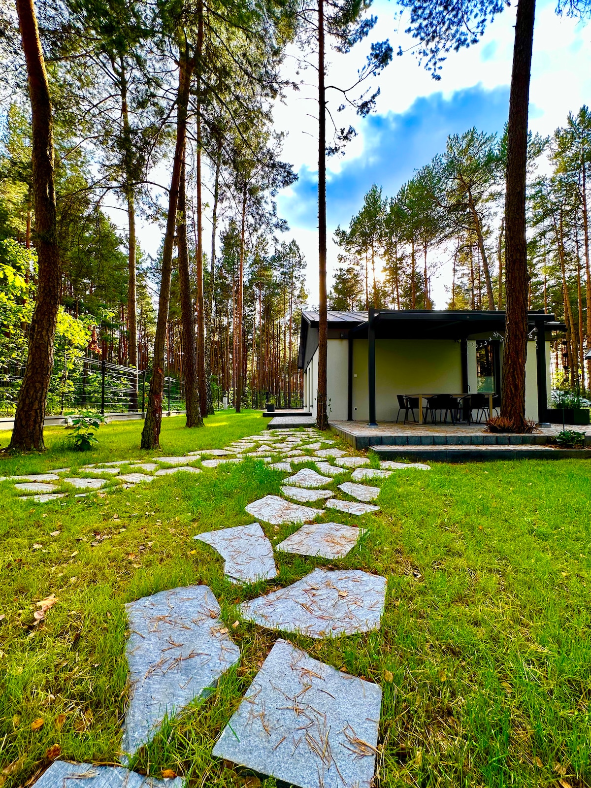 Komportable at moderno (nakumpleto noong 2016) apartment na may isang palapag para sa 2 hanggang 4 na tao (+ junior bed na 165cm), na matatagpuan sa isang hiwalay na bahay sa isang lumang parke, na bahagi ng isang malaking (36ha) pribadong dating mill settlement na "Uroczysko Połomja", na matatagpuan sa Jurassic Landscape Park. Ang kabuuang sukat ng bahay ay 47m2, kabilang ang double bedroom, kusina at sala na may sofa bed (para sa 2 tao), banyo na may toilet at shower, at isang maliit na kuwarto na may aparador at junior bed. Terrace na may awning (14m2), mga kasangkapan sa hardin at barbecue. Wi-fi.
