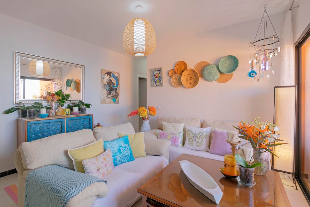 Precioso apartamento de una habitación totalmente equipado y recién reformado a 10 minutos de la capital y a 35 minutos del sur de la isla. En primera línea de playa con unas vistas inigualables, con acceso a piscina natural ubicada a escasos metros y al muelle, donde podrás bañarte en el mar. Si lo prefieres, puedes acceder al club deportivo con canchas para varios deportes, gim y piscina (acceso privado). Complejo tranquilo, con buena conexión al bus público y varios supermercados.