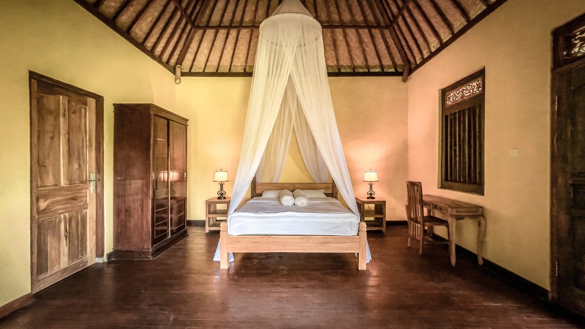 Ang Sumatran Style Wooden Beach house na ito ay isang napaka - simple, nakakarelaks, at may lahat ng kailangan mo upang gawing kasiya - siya ang iyong paglagi sa beach sa West Bali. Isa itong studio style setup na may outdoor kitchen area, tradisyonal na balinese style bathroom at outdoor hot/cold shower at Double Bed na may Ceiling Fan & Mosquito net. Mayroon itong magandang patyo sa labas para makapagpahinga sa mga hardin, at 3 minutong lakad lang ang layo nito papunta sa Pribadong Beach.