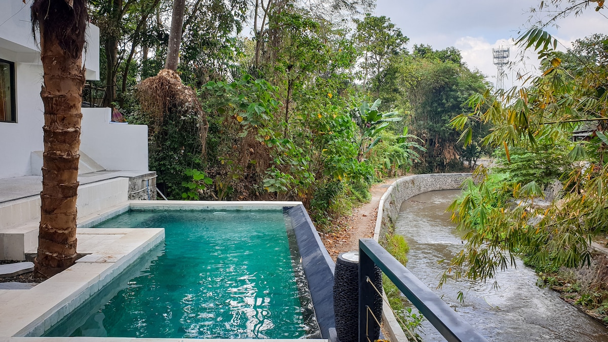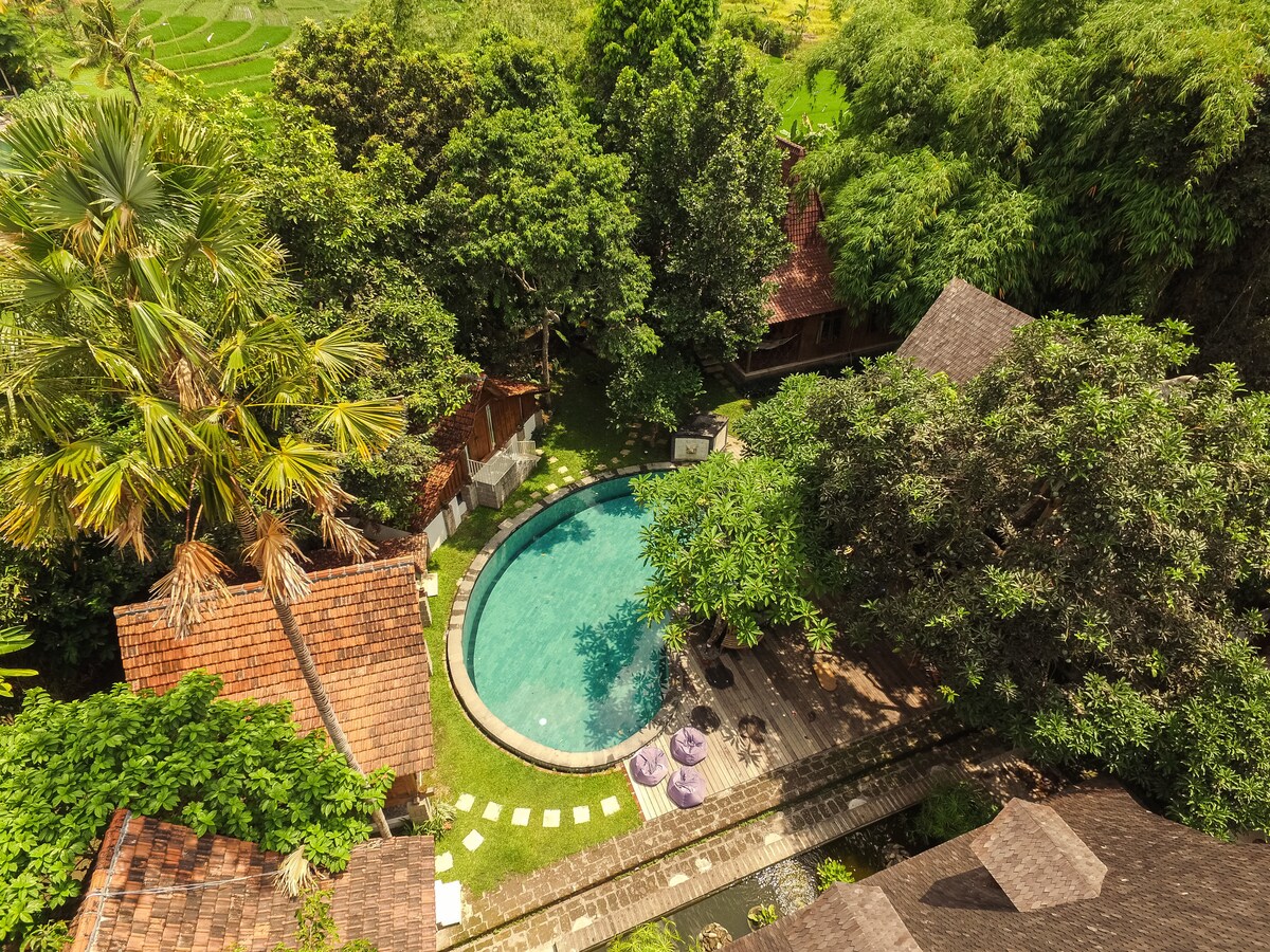 Ang aming Bali batay sa paglikha ng gubat. Puwang at tuluyan para sa mga creative at life explorer sa lahat ng lugar. Maligayang pagdating sa isang bisita sa isang tropikal na vibe. Manatili, lumikha, magpahinga, mag - enjoy at makipagkita sa isa 't isa. Isang napaka - espesyal na tuluyan para sa mga taong ayaw makaligtaan ang isang luntiang tropikal na labas. Walang pader sa harap, kaya walang balakid sa pagitan mo at ng ilog ng gubat. Tangkilikin ang mga tunog ng ligaw na kalikasan araw at gabi.