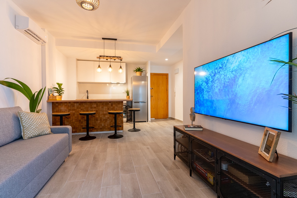 VT -491480 - A Modern at napaka - maliwanag na apartment sa front line ng Playa de Levante de Santa Pola, (Peñagrande area). Mula sa anumang punto ng sala at bukas na kusina, masisiyahan ka sa magagandang tanawin ng karagatan. Indibidwal na air conditioning sa bawat kuwarto. 2 modernong banyo (1 glazed en suite). Ang mga bintana ay ganap na nakabukas tulad ng isang akordyon, na isinasama ang terrace sa sala. Isang maliit na paraiso sa gitna ng nayon, para masiyahan sa isang natatanging bakasyon! :)