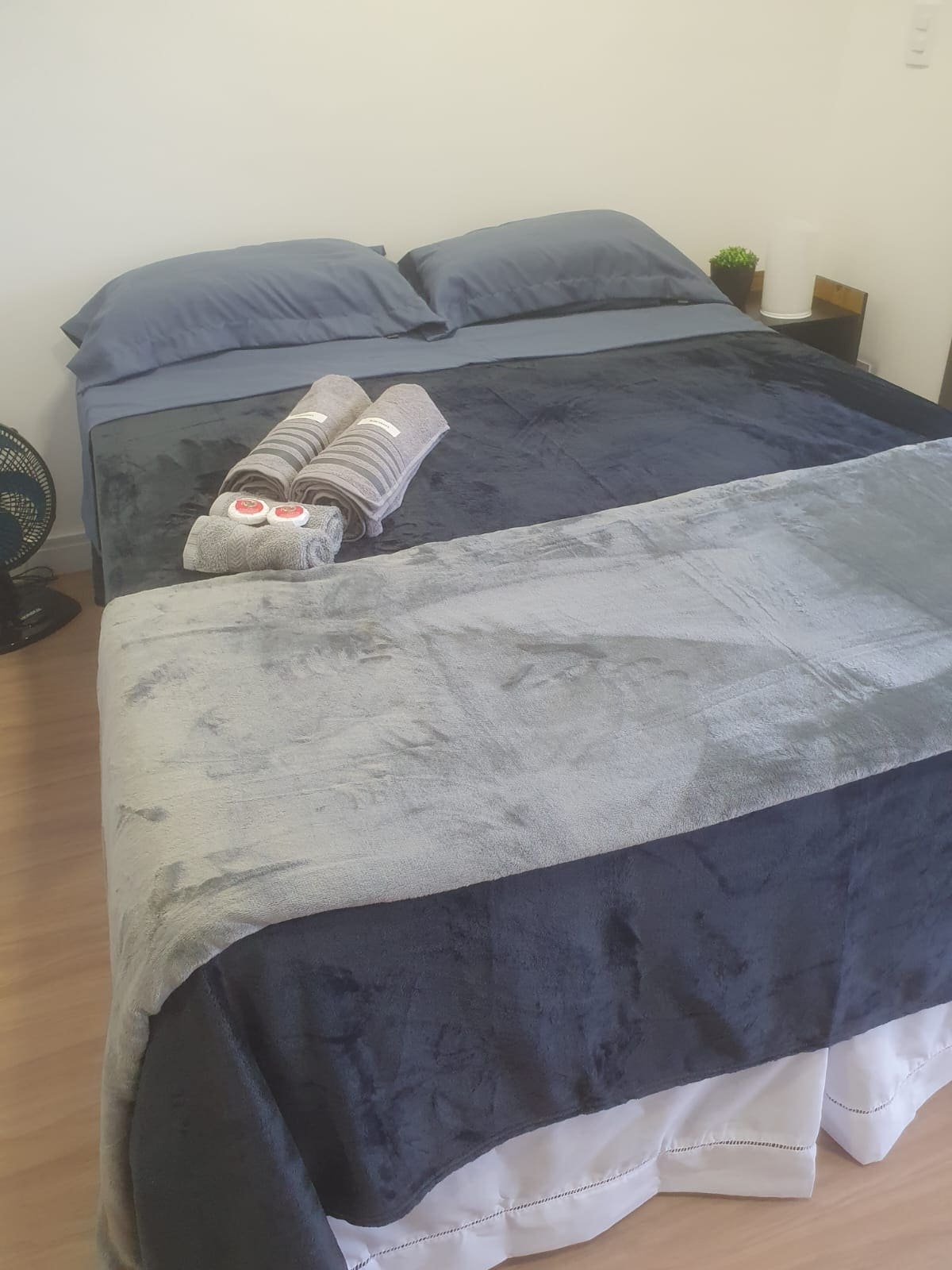 Functional, moderno, komportableng apartment na may mahusay na tapusin; 50m² ng kapaki - pakinabang na lugar; 2 silid - tulugan: mag - asawa sa silid - tulugan ng smart TV streaming, air - conditioning at mga kabinet; ang solong kuwartong may bicama, bangko at umiikot na upuan, ceiling fan, ay mainam para sa tanggapan sa bahay; Sala na may Smart TV streaming, Wi - Fi at air - conditioning; Kusina na may kagamitan; Labahan na may washer at dryer at plantsa. Mainam para sa mga naghahanap ng kaginhawaan at pagiging praktikal para sa kanilang susunod na biyahe.