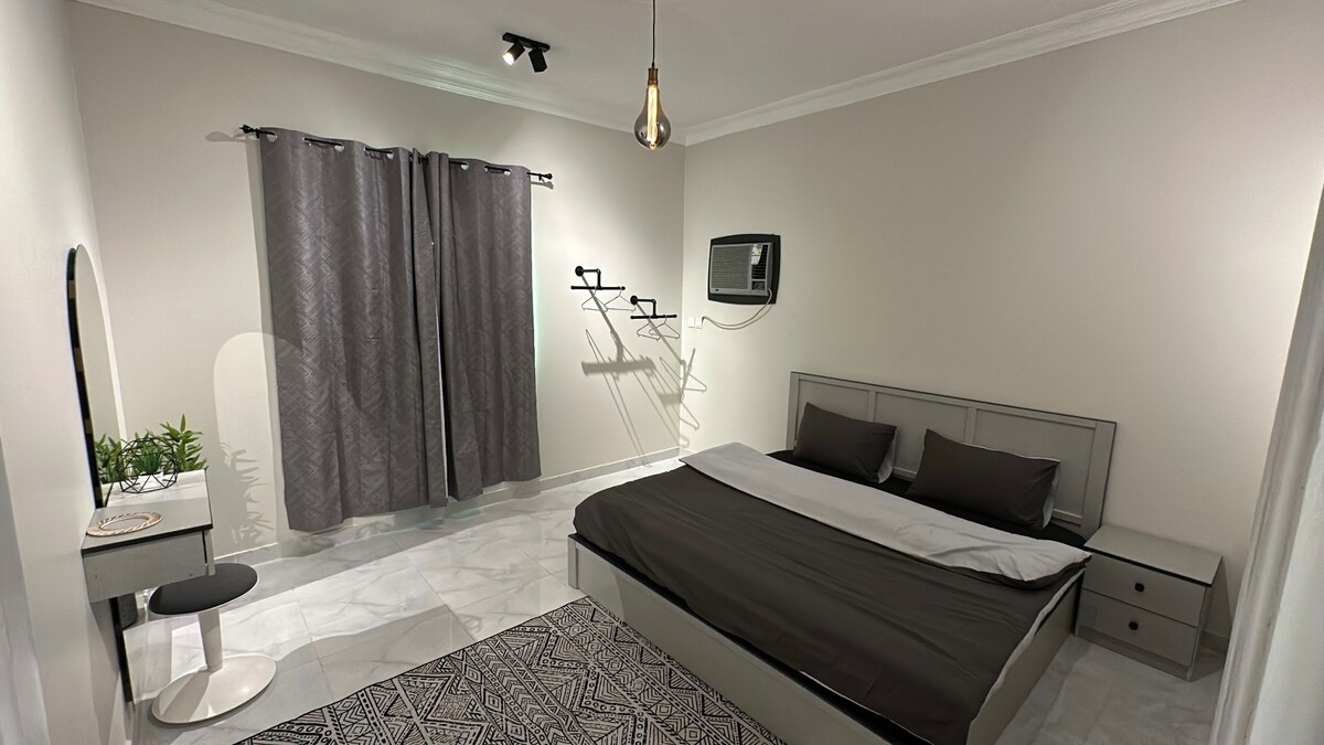 Maluwang at modernong silid - tulugan na matutuluyan, na naglalaman ng komportableng queen bed, balat, at minibar. Nag - aalok ito ng aparador at storage hairdryer, na may air - conditioning unit, at pribadong banyo na kumpleto ang kagamitan para sa tahimik at komportableng pamamalagi. Maluwag at modernong silid - tulugan na matutuluyan, na nagtatampok ng komportableng queen bed, sofa, at mini fridge. May kasamang aparador, aparador, split AC, at kumpletong banyo para sa komportable at nakakarelaks na pamamalagi.
