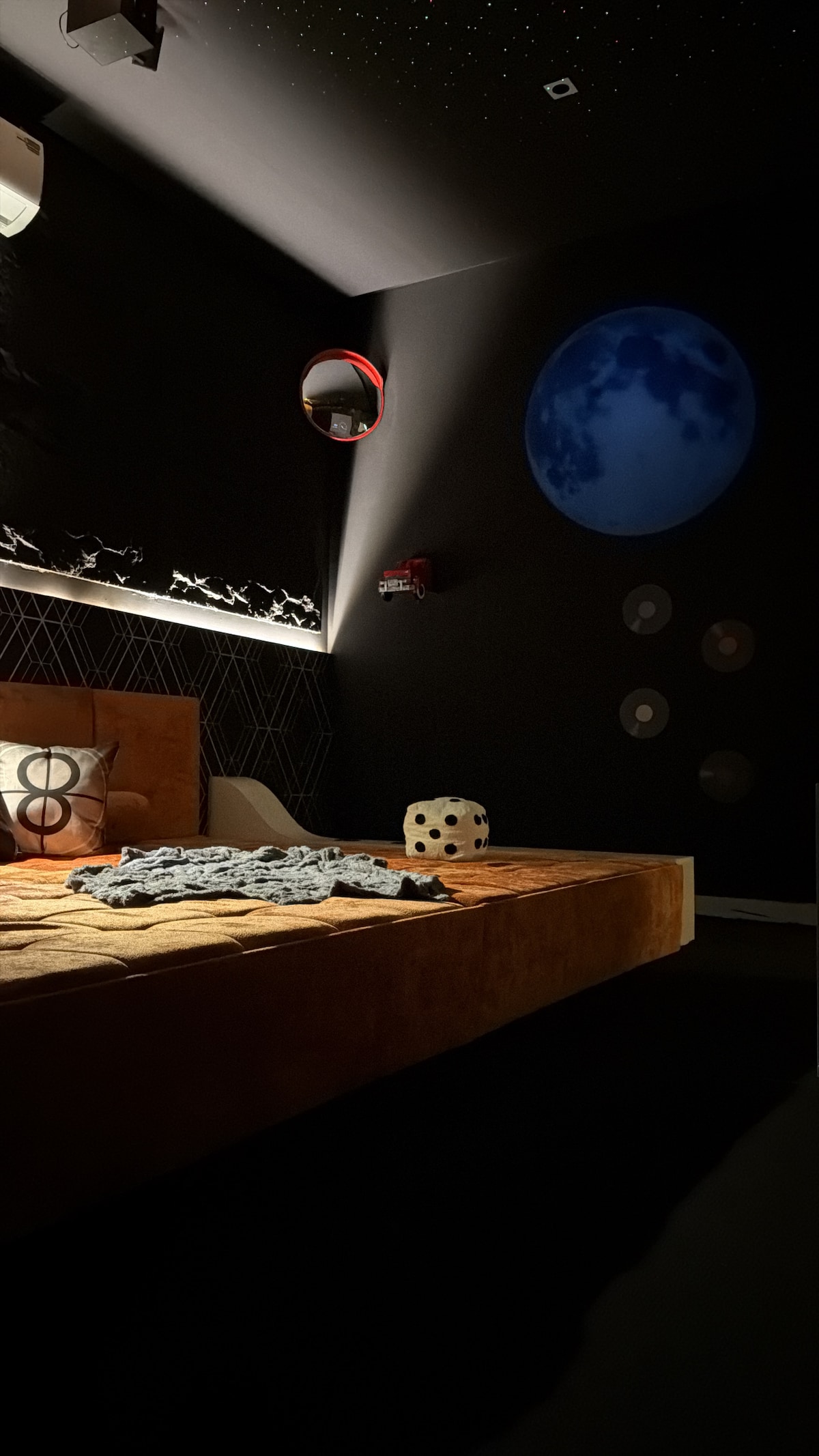 Ang apartment na ito ay dinisenyo na may maganda at natatanging disenyo, isang tahimik at ligtas na apartment na may komportableng disenyo malapit sa lahat ng serbisyo, internasyonal na restawran, cafe at mall. Binubuo ito ng isang silid-tulugan na may malaking higaan, isang sala at isang maliit na bubong ^-^ at isang sulok ng kape, isang takure at isang 60-inch screen. Ang pinagsamang kusina na may mga kagamitan sa pagluluto, oven, refrigerator, microwave, washing machine at sabon sa kamay na matatagpuan sa ikalawang palapag, ang residensyal na gusali nito (walang elevator) ay isang napaka - tahimik at ligtas na lugar at kumpletong privacy na parang nasa iyong tuluyan.