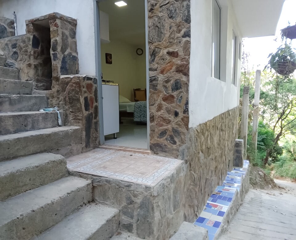 Disfruta tu estadía en Taganga con una maravillosa vista a la bahía rodeado de naturaleza. Apartamento de un espacio en primer piso con baño privado, cocina, sala y aire acondicionado, muy espacioso y super tranquilo, contamos con una terraza común en piso superior con vista. (La habitación no tiene vista directamente al mar) Relájate en este tranquilo lugar lejos del ruido y a 500 metros de la playa, donde puedes disfrutar tu desayuno con una excelente vista al mar.