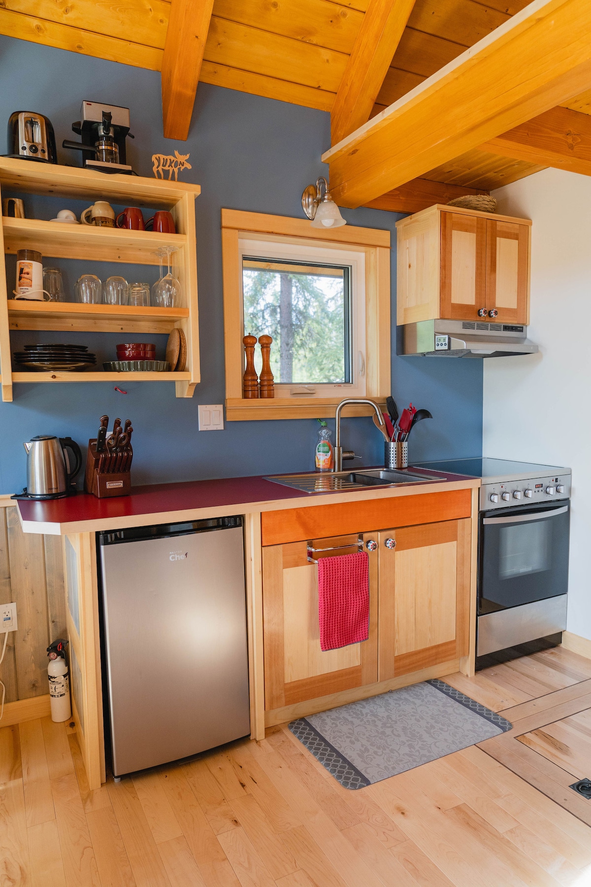 Experience the warmth and charm of our custom timber-frame guesthouse, nestled in a peaceful country-residential neighbourhood. Enjoy the serenity of the Yukon wilderness from your private deck, complete with breathtaking mountain views. The back deck is bathed in sunlight from late morning until sunset — perfect for relaxing, reading, or soaking in the natural beauty.
