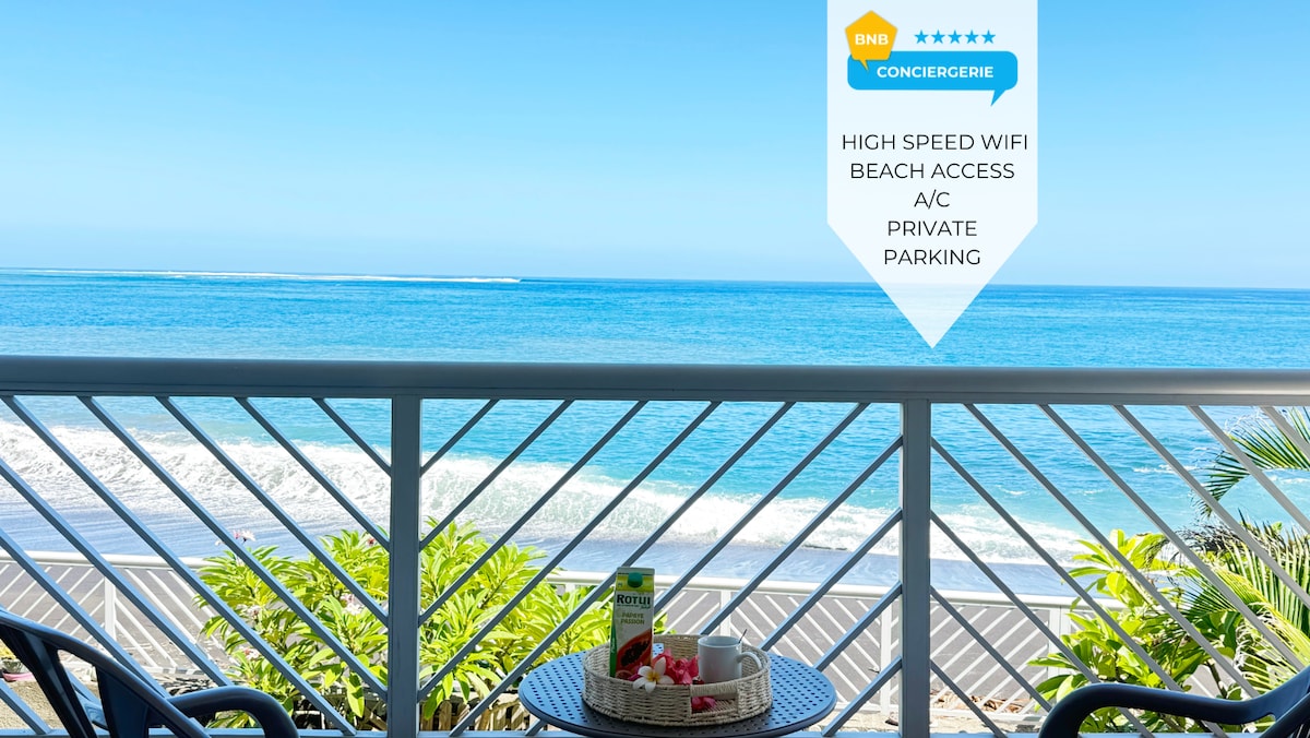 Magkadugtong na independiyenteng magandang one - room "sa beach" apartment na may kahanga - hangang tanawin na nagbibigay ng parehong "motu" sa Mahina, East coast. Sa 10 minutong maigsing distansya mula sa pampublikong Point Venus beach at humigit - kumulang 20 hanggang 30 minuto sa pamamagitan ng kotse ng sentro ng lungsod. Ang access road mula sa kalsada ng Pointe Venus ay mga 350 metro ang haba (at kongkreto), pinapayuhan na magplano ng sasakyan. Paliligo at pagpapahinga, maliit na terrace, kayak sa pag - aayos.