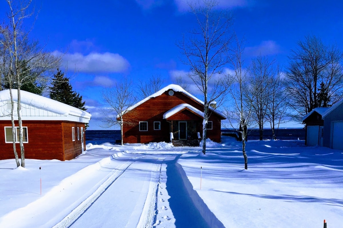 Relax in the serenity of Paradise View’s incomparable perspective of Whitefish Bay every morning when you awake. You will enjoy sun and moon rises from your living room, watch the birds, the freighters and the ever-changing moods on the bay. If you love hiking or snow shoeing, bird watching, cross country skiing or photography – this is the place for you. When winter arrives, we get lots of snow! Located just 14 miles from Tahquamenon State Park & 1-1/2 miles from Paradise.