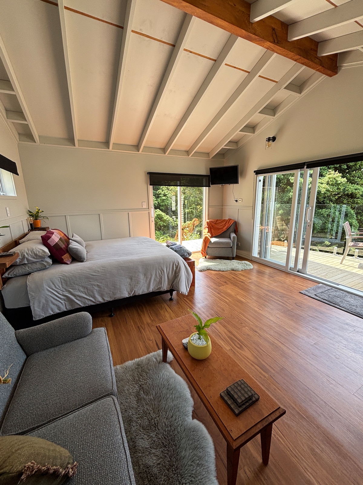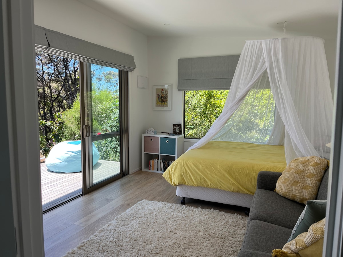 Gumising sa mga tanawin ng tubig sa Beach Hut - isang maaraw at self - contained na studio sa tabing - dagat sa One Tree Point. Bumaba ng ilang baitang papunta sa isang tahimik at mabuhangin na beach na may mga tanawin sa kabila ng daungan papunta sa Mt Manaia - perpekto para sa paglangoy sa buong alon, o paglalakad sa kahabaan ng beach kapag nasa labas ito. Masiyahan sa tahimik na bakasyunan ng mga mag - asawa na may kusinang may kumpletong kagamitan, pribadong patyo, at lahat ng kailangan mo para makapamalagi. Maglibot sa mga kalapit na cafe, mag - explore sakay ng bisikleta, o magrelaks sa lilim ng mga puno ng pōhutukawa.