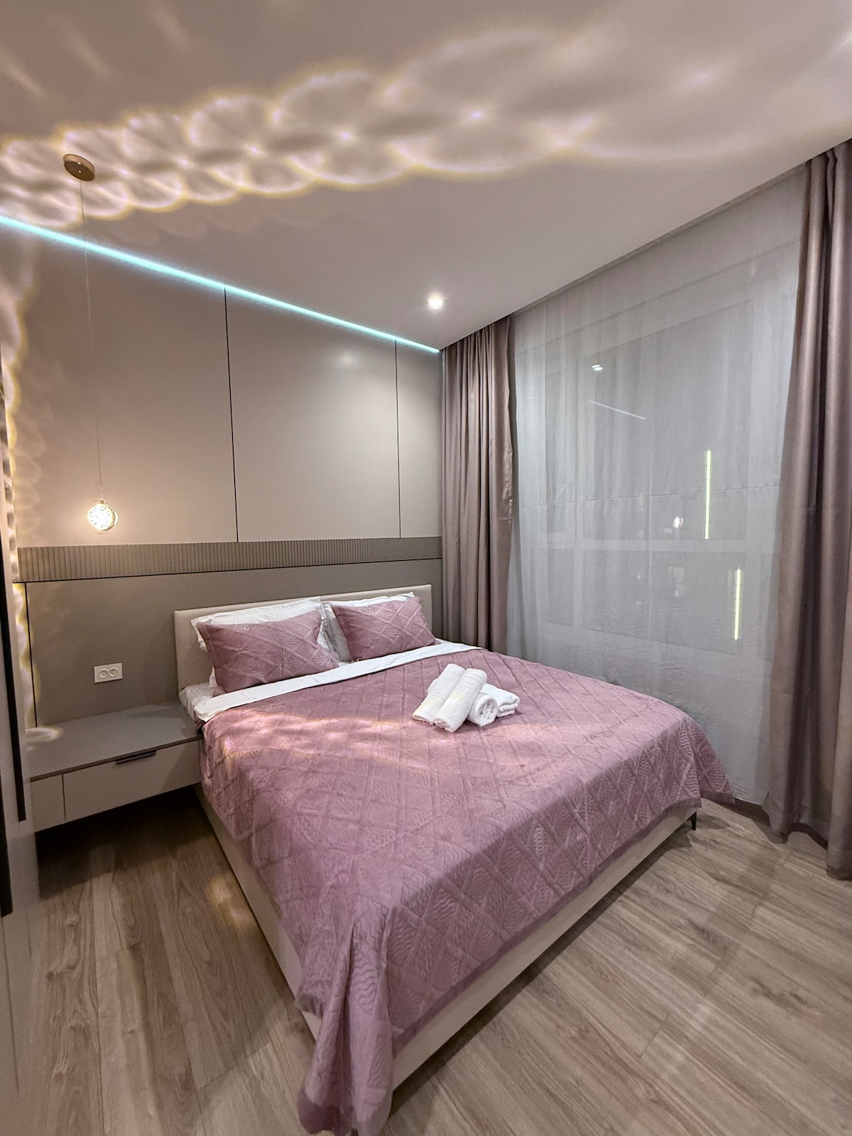 Maligayang pagdating sa * LoftVibes Almaty* — naka — istilong apartment sa tahimik na kalye sa gitna ng Almaty. Maluwang na bulwagan, dalawang komportableng silid - tulugan, malaking TV, kumpletong kusina at dalawang modernong banyo. Pinupuno ng liwanag ang loob ng mga panoramic na bintana, kung saan matatanaw ang lungsod at mga bundok. Malapit nang maabot ang mga restawran, cafe, at atraksyon. Perpektong lugar para sa komportable at naka - istilong holiday sa gitna ng Almaty. Mag - book * LoftVibes Almaty* at tamasahin ang kapaligiran ng modernong kaginhawaan!