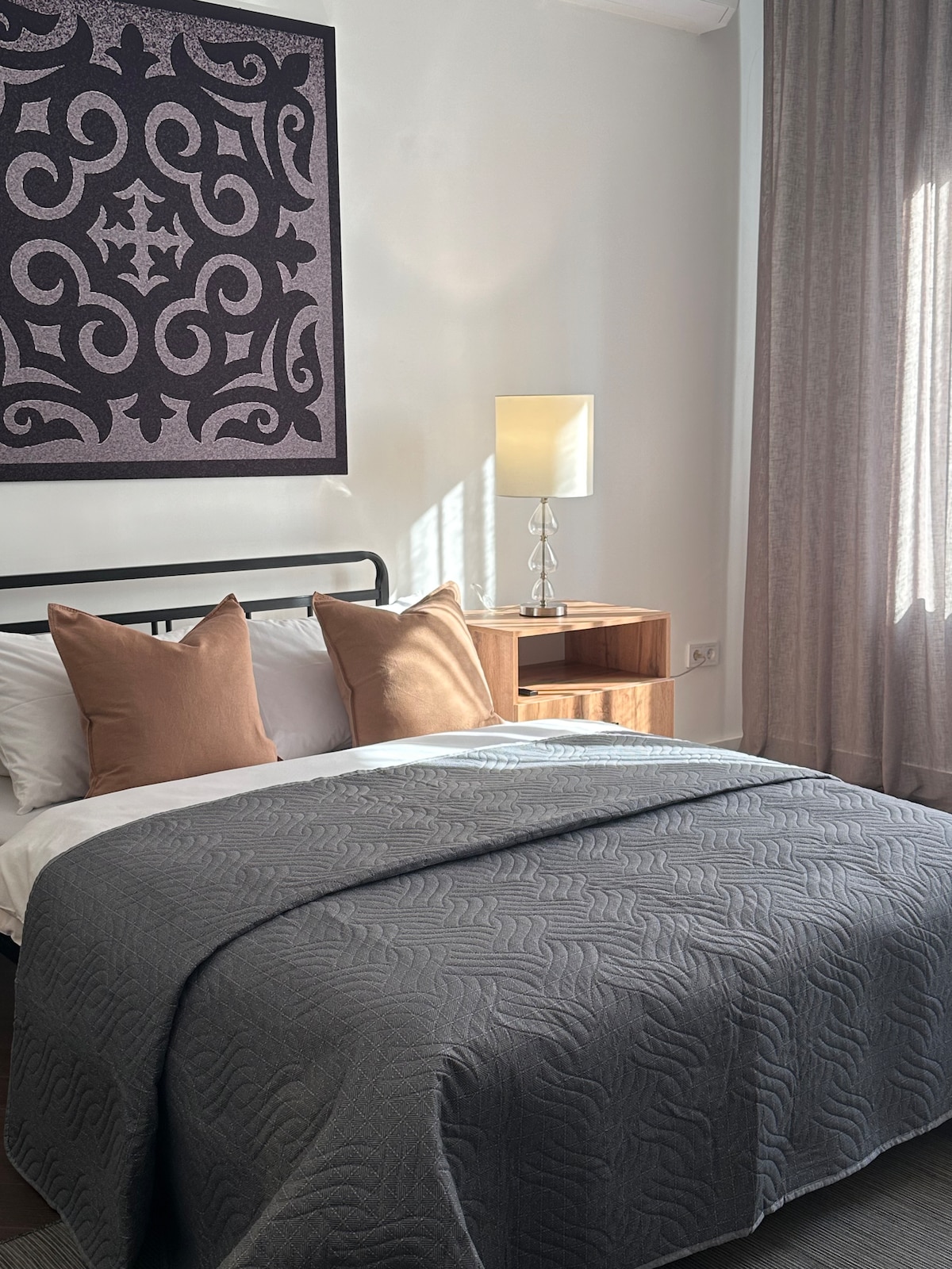 Дофаминовая квартира в центре города! Отличное место для комфортного проживания: • Просторная и светлая гостиная с высокими потолками. • Оборудованная кухня для тех, кто любит готовить. • Уютная спальня с шикарным видом на город. • В нескольких минутах пешком — магазины, кафе и рестораны, парки, пешеходные улицы. Мы создали это пространство, чтобы вы чувствовали себя как дома, а городской ритм был всегда рядом.